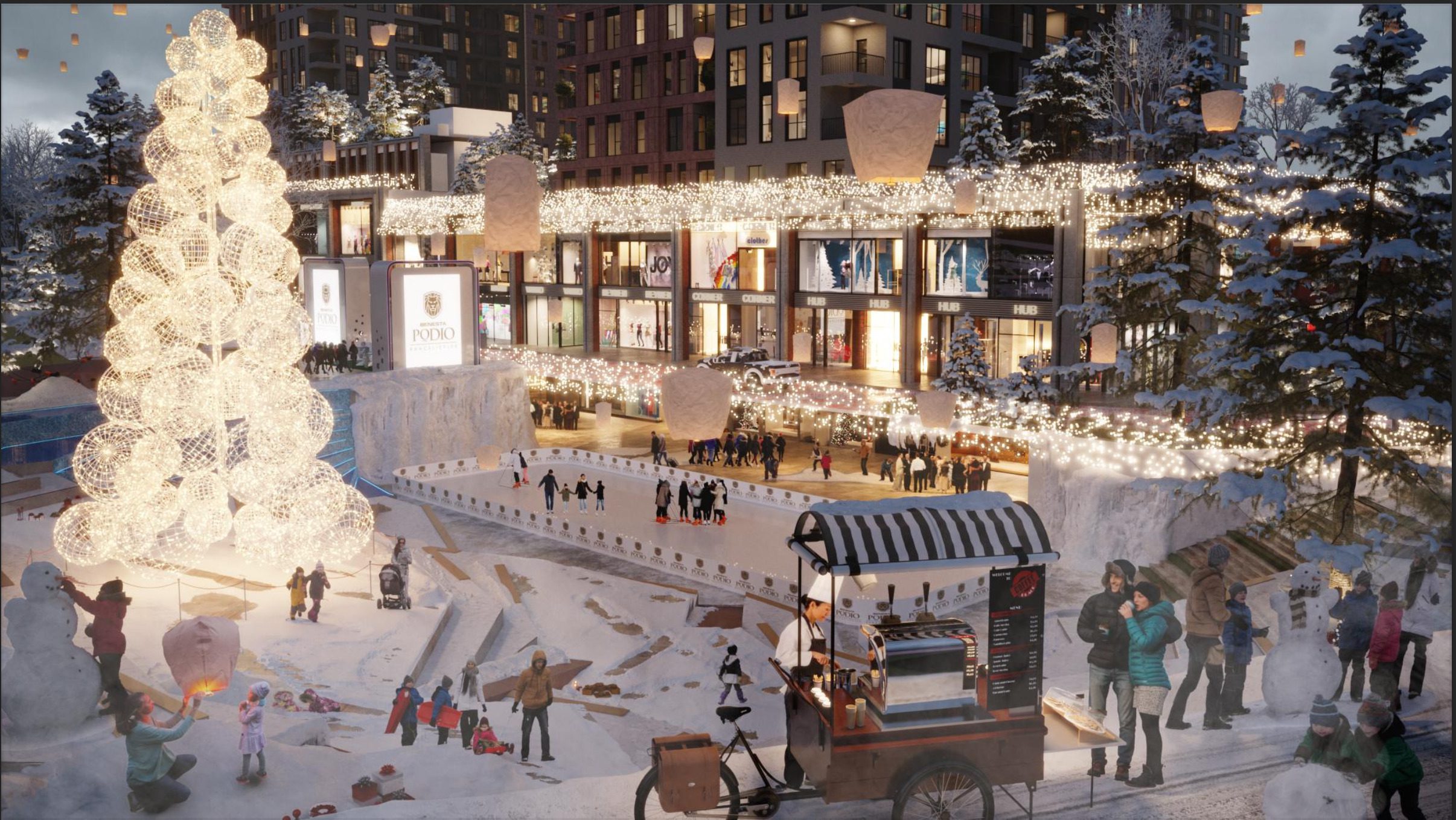- 4 residential blocks + 330 retail units