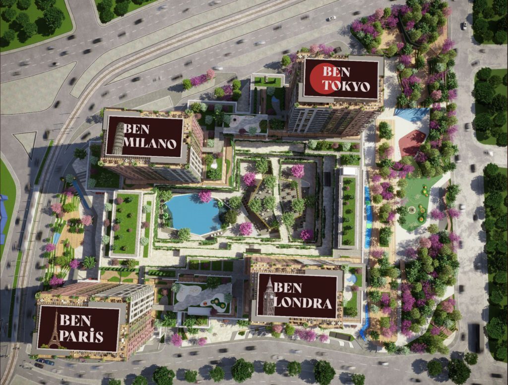 The European part of Istanbul, next to the two main highways E5 and TEM. In the immediate vicinity of the complex there are public transport stops, cafes, restaurants, supermarkets, shops, sports and medical centers.