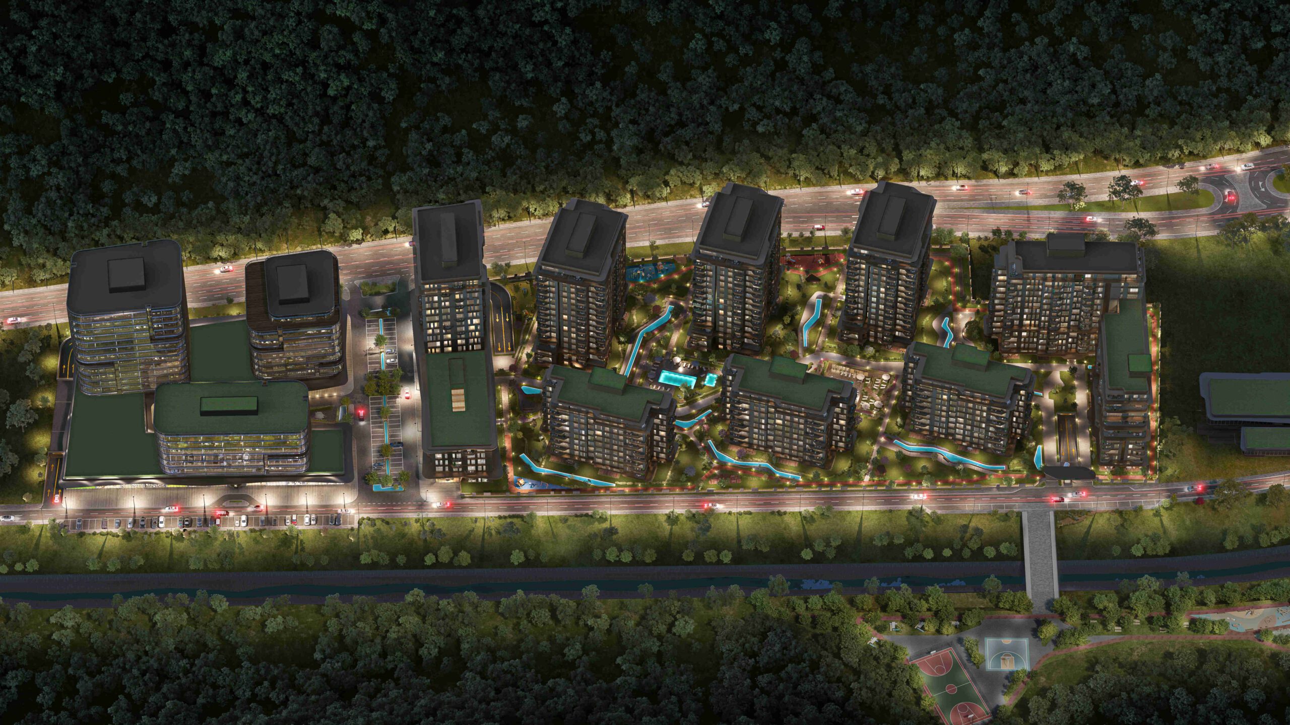 The project will be built with an investment of $ 2 billion. The area of residential premises from 64.34 m2 to 329.46 m2, You can get to the stores using a card system to enter the residence. There will be no transition from the office part to the residential part. All facades of the project overlook the forest.