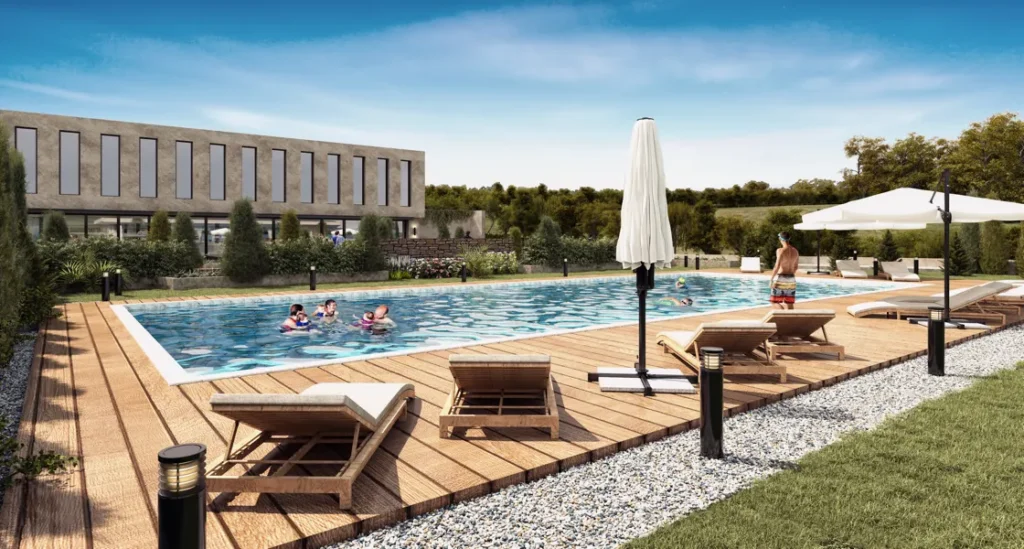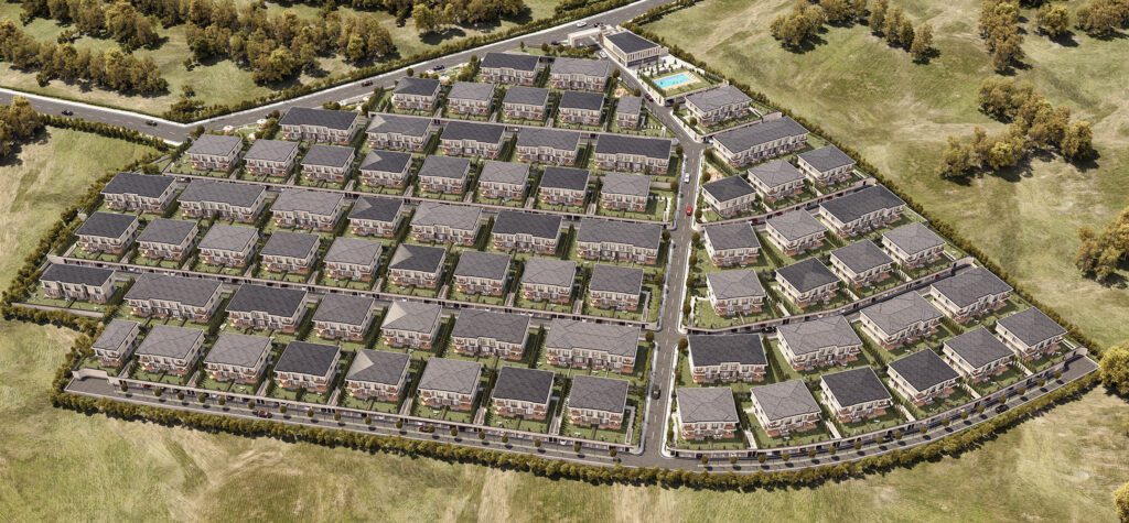 The total plot area is 56,500 m2, on which there are 177 villas.