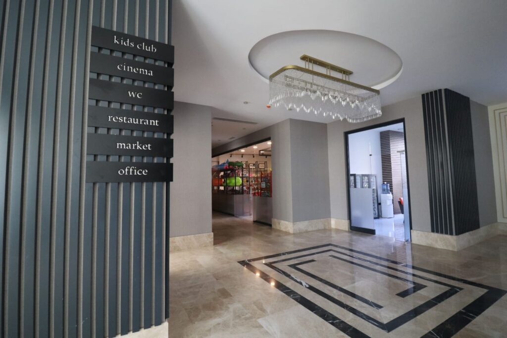 outdoor, indoor pool many children’s play areas (outdoor and indoor), sauna, hammam, salt room, fitness room, cafeteria parking security cinema