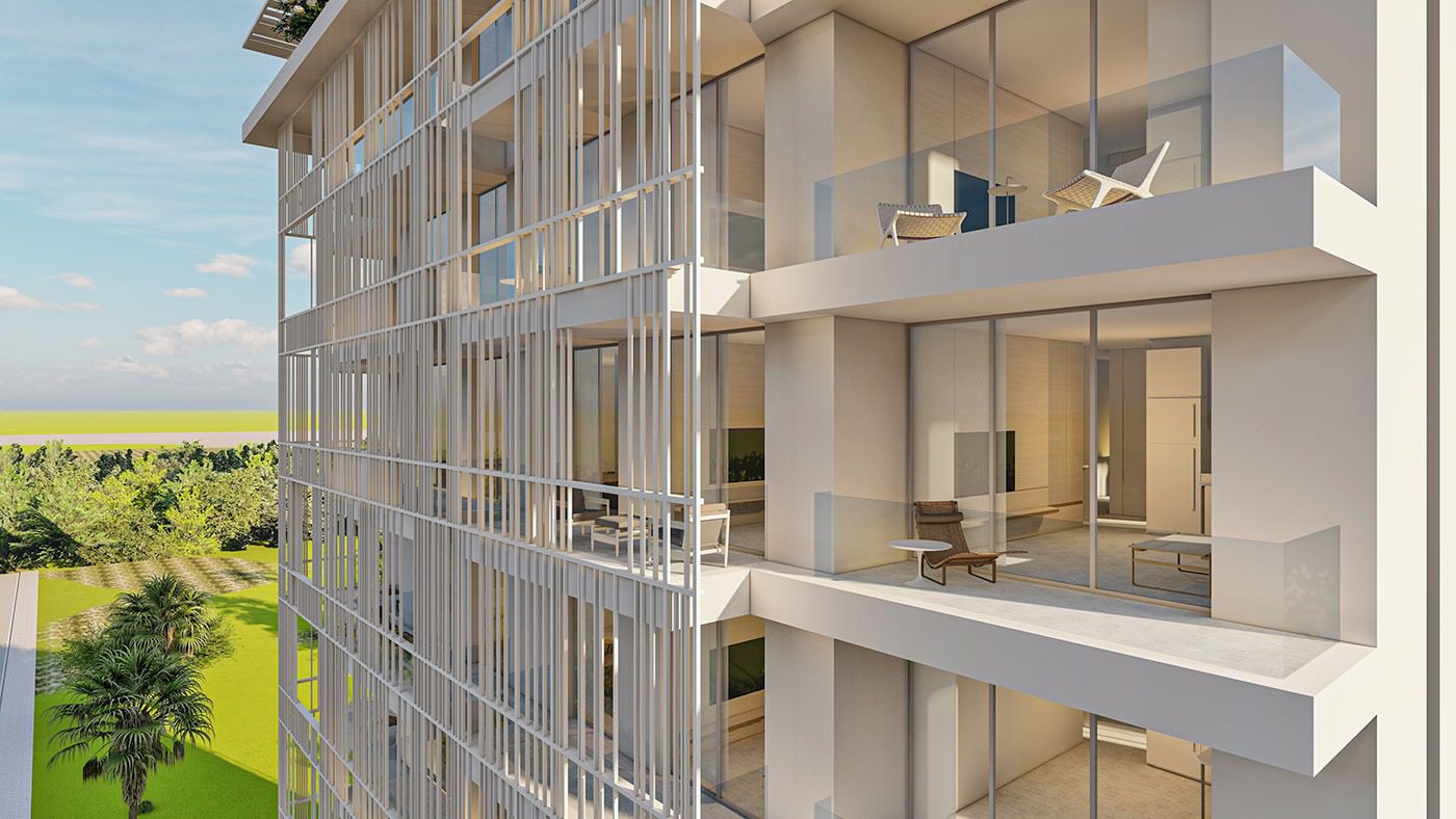 Superficie du terrain 1.127 m2, le complexe se compose d’un bloc de 9 étages et 44 appartements.