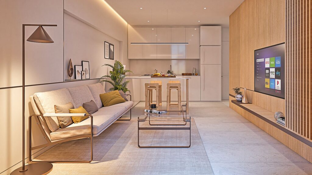 Tout comme son apparence, l’hôtel a un design intérieur exclusif avec des finitions élégantes. Les appartements modernes sont équipés de matériaux de haute qualité tels que :