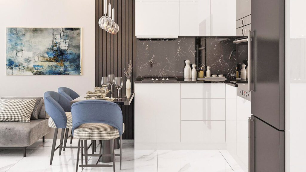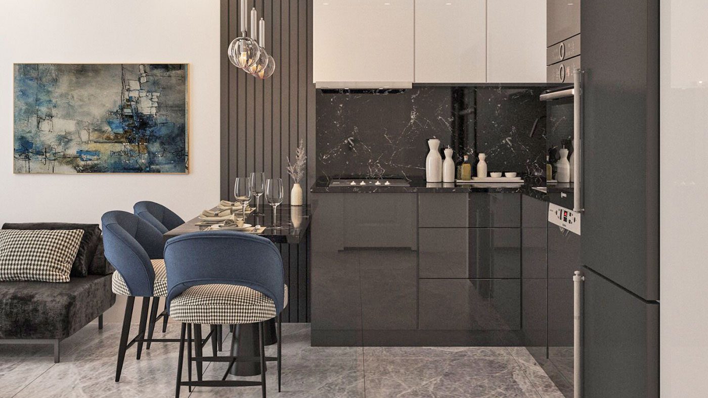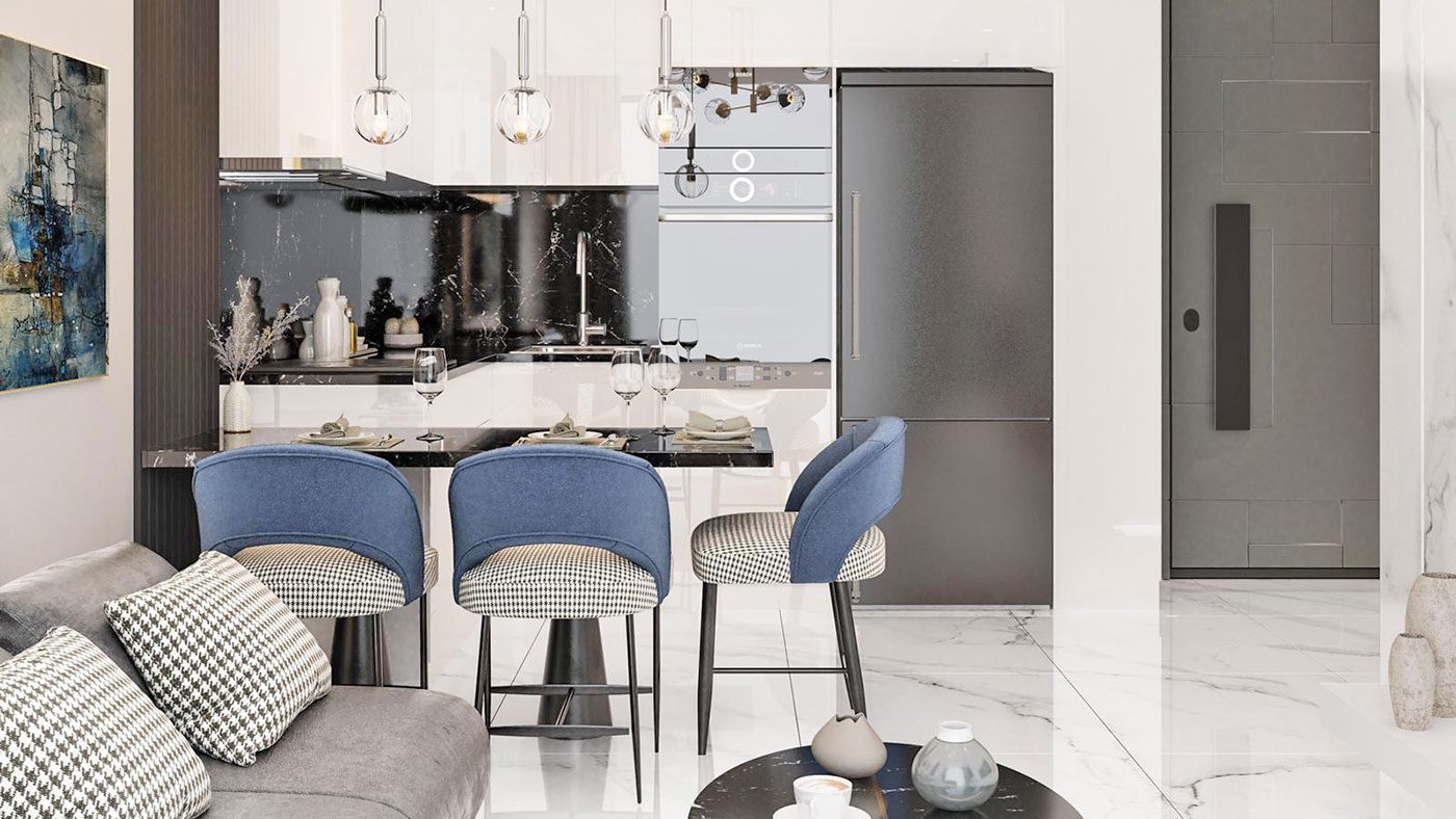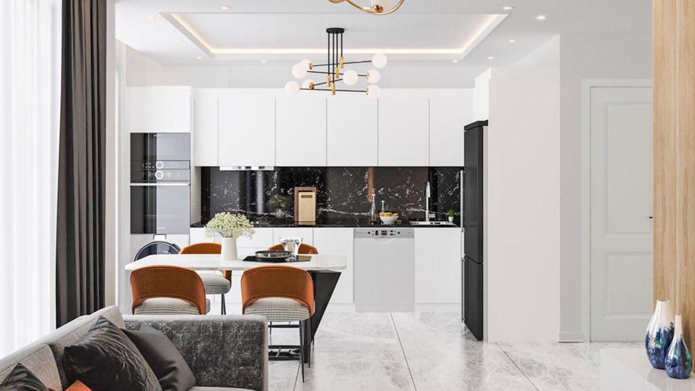 Les appartements disposent d’une porte blindée en acier, de fenêtres en PVC à double vitrage, d’une salle de bain entièrement carrelée et équipée, d’une cuisine avec armoires, d’un éclairage intégré et plus encore.