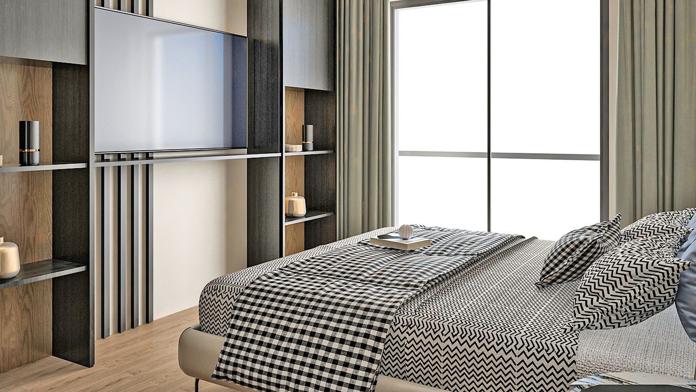Les appartements comprennent un séjour, une cuisine américaine, une chambre, une salle de bain et un balcon, équipés de matériaux de qualité :