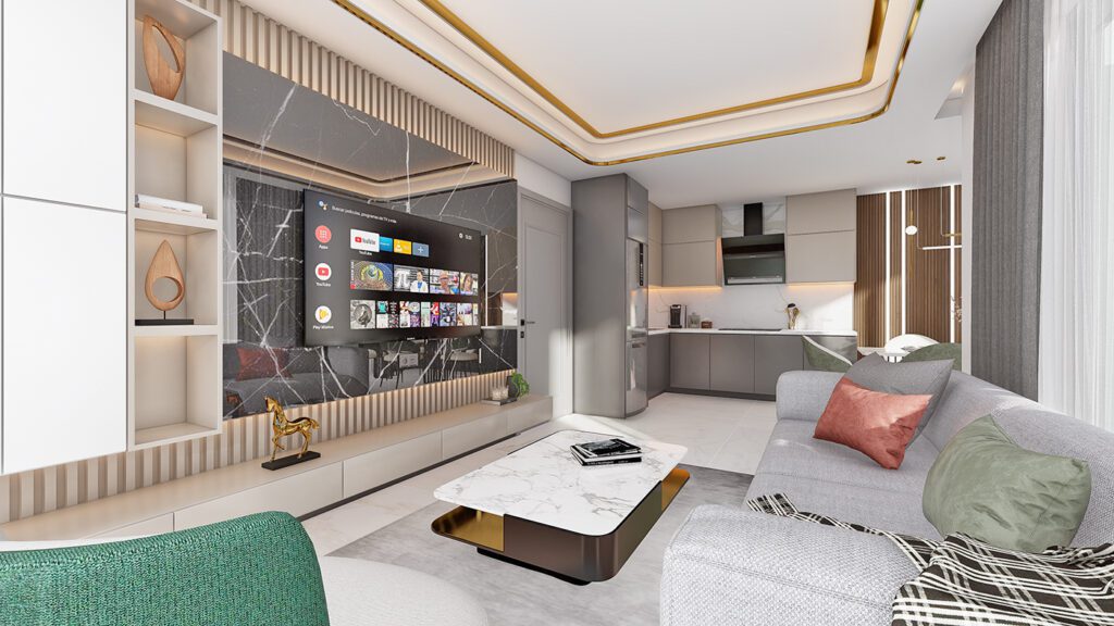 Les appartements ont un design moderne et sont équipés de matériaux de haute qualité :