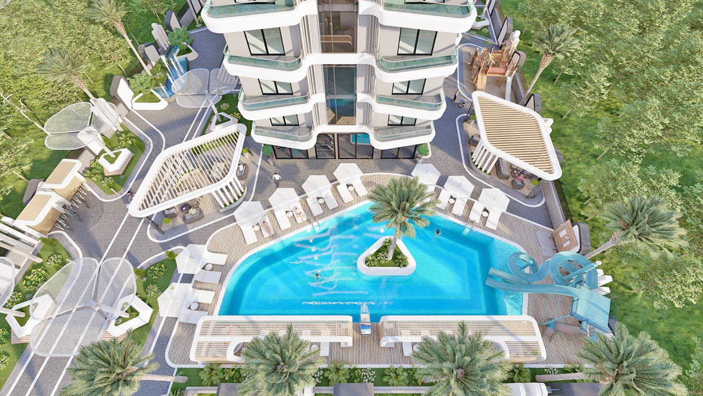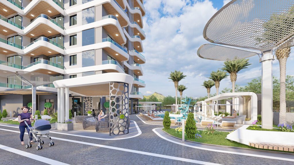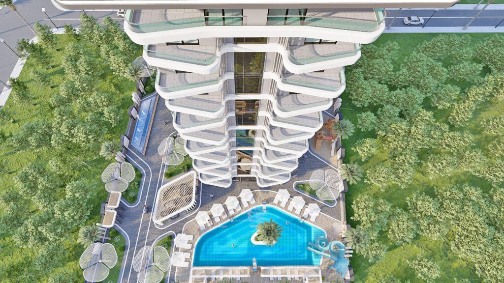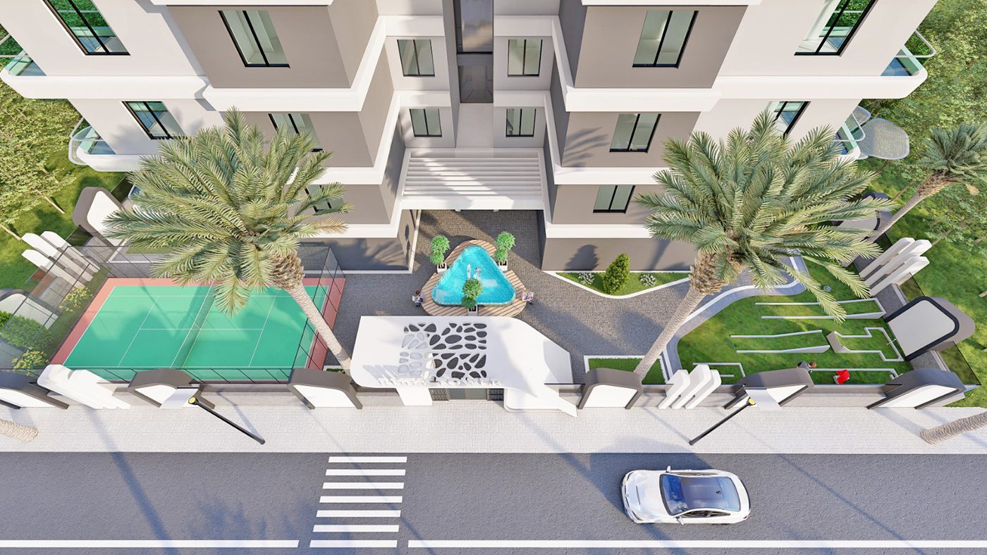 Appartements à Alanya, Mahmutlar dans une résidence avec une infrastructure luxueuse à 600 mètres de la plage, ont un revenu locatif élevé et un potentiel d’investissement.