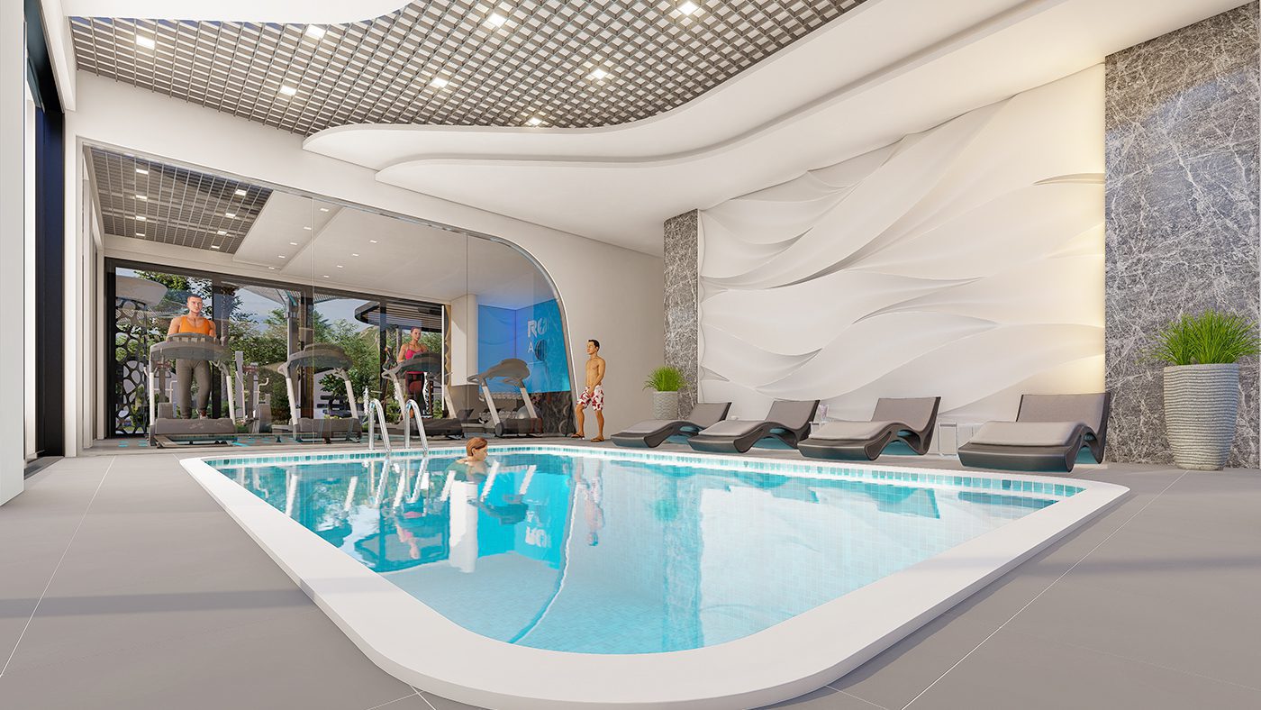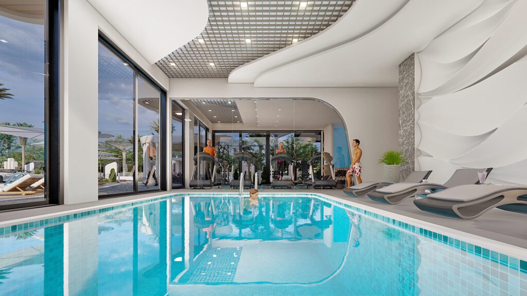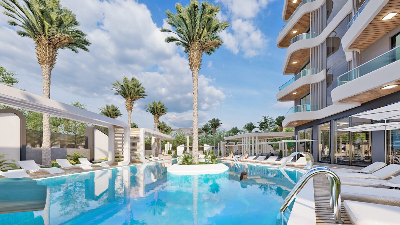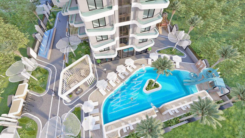 Appartements à Alanya, Mahmutlar dans une résidence avec une infrastructure luxueuse à 600 mètres de la plage, ont un revenu locatif élevé et un potentiel d’investissement.
