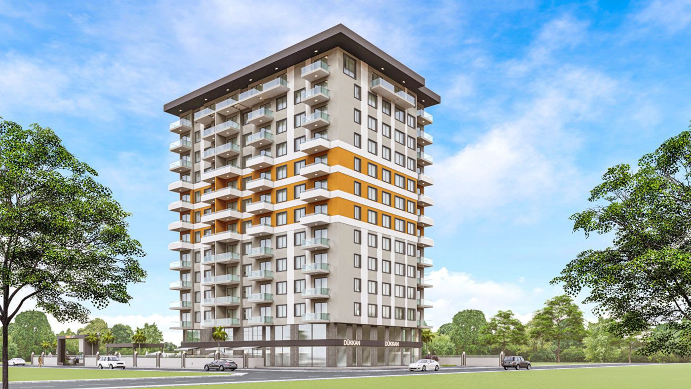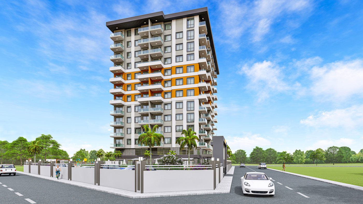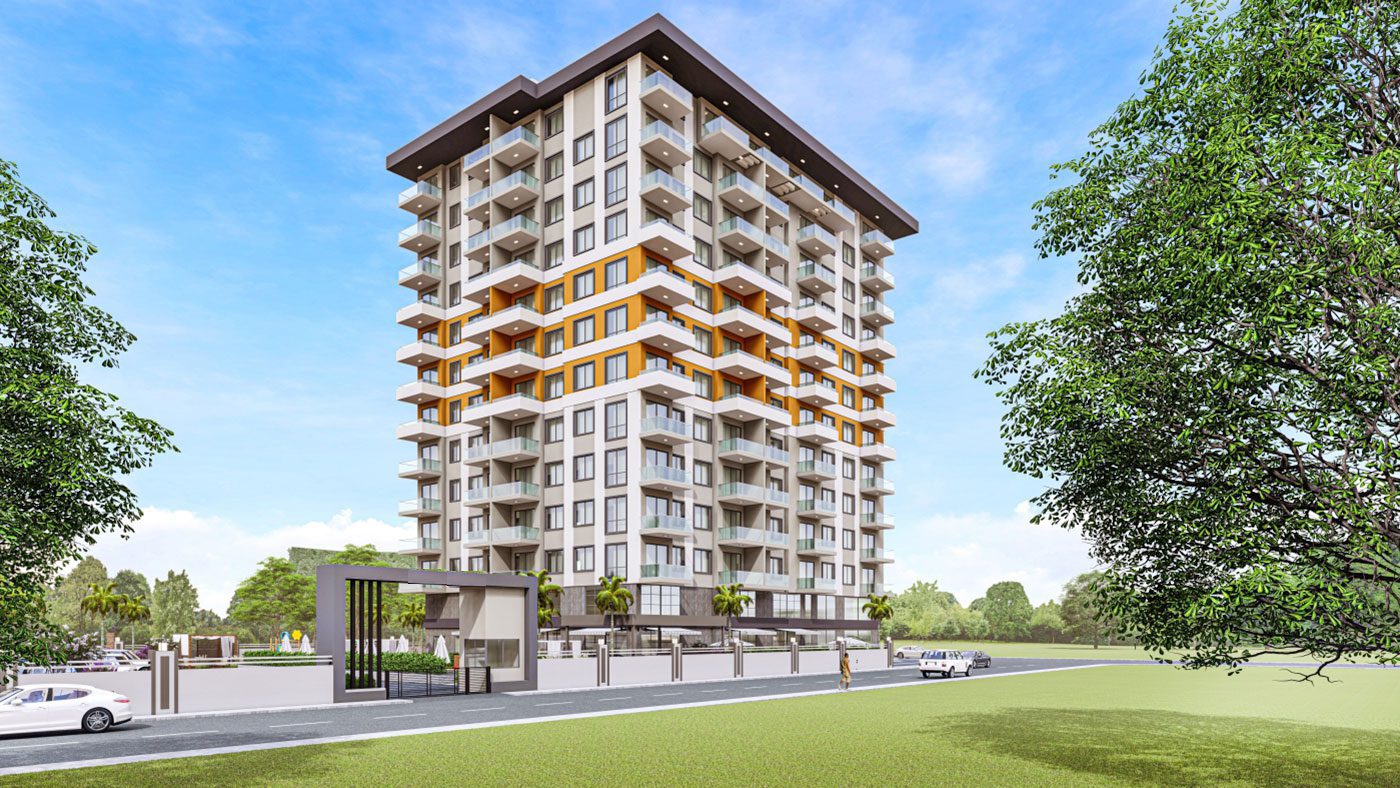 Les appartements de luxe à Alanya Mahmutlar sont situés sur un terrain de 3 000 m2 et se composent d’un bloc de 107 appartements.