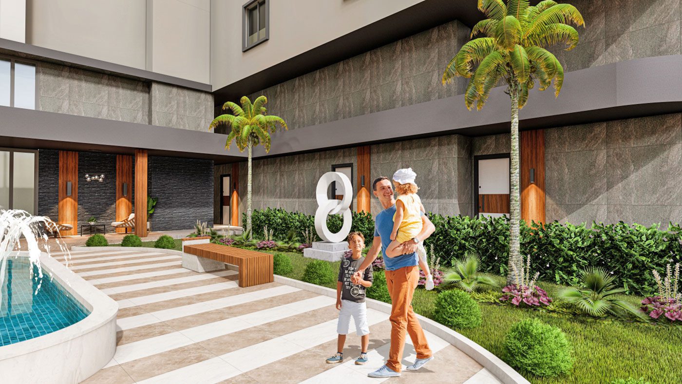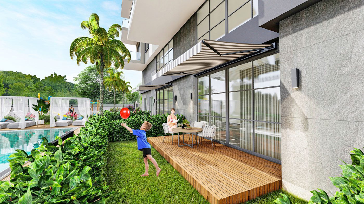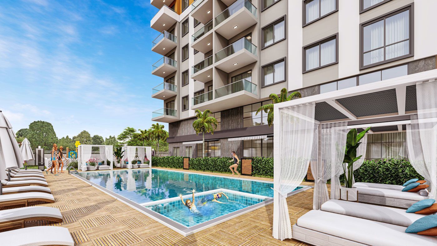 Les appartements de luxe à Alanya Mahmutlar sont situés sur un terrain de 3 000 m2 et se composent d’un bloc de 107 appartements.