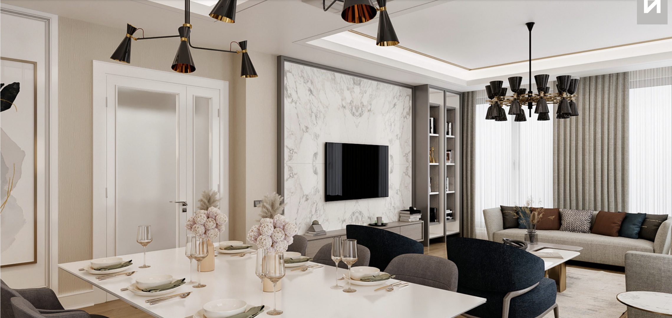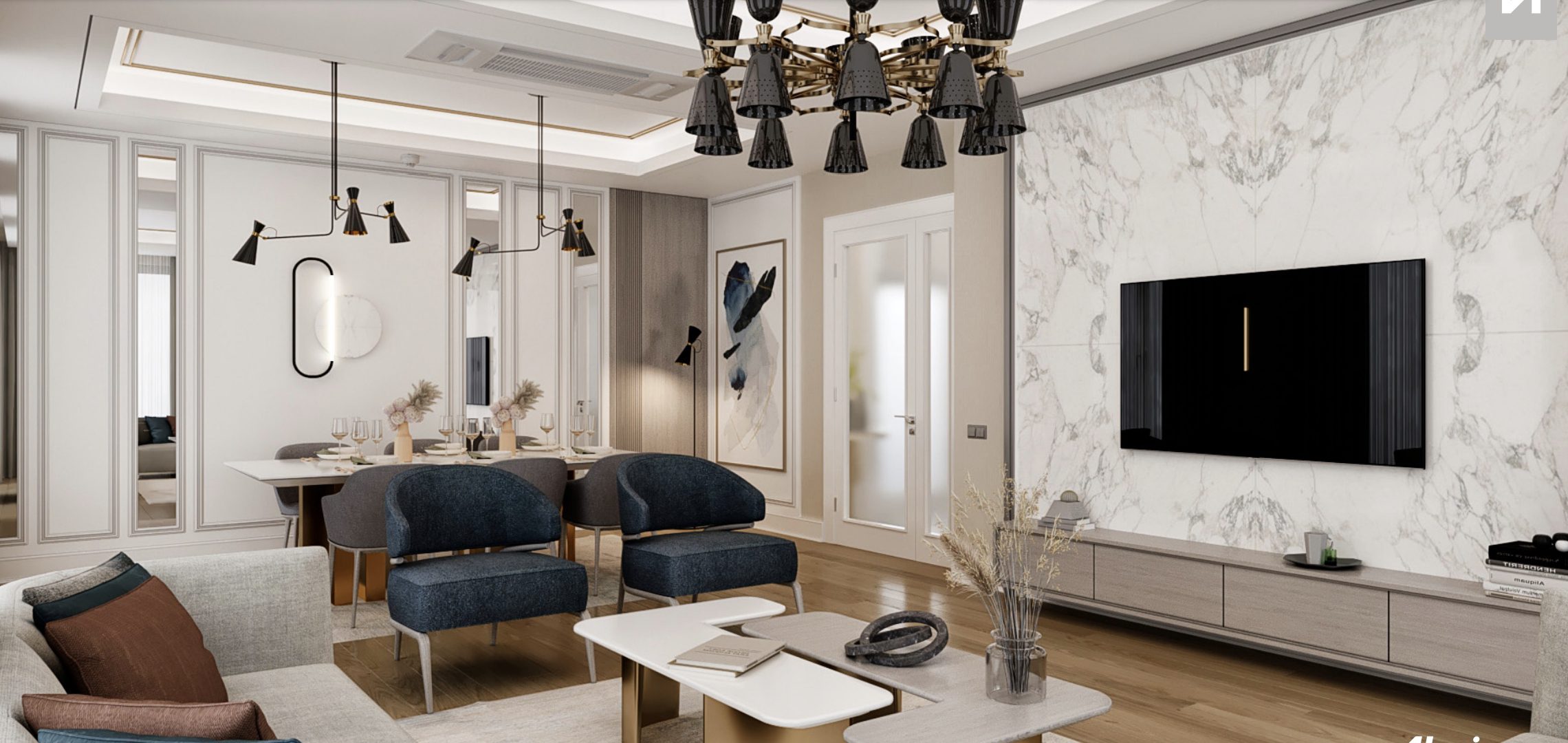 🔸️Les unités résidentielles comprennent des cuisines de marque internationale entièrement équipées, du marbre exquis et des salles de bains élégantes.