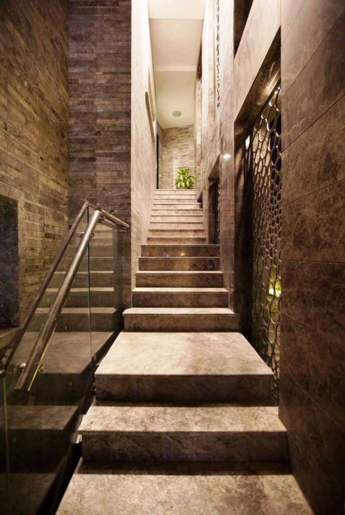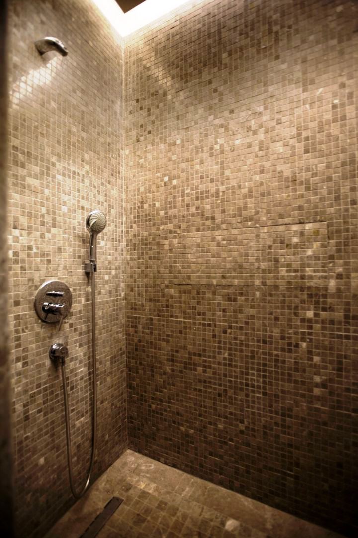 - Mosaïque de travertin argenté et revêtement extérieur en marbre Dark Emperador