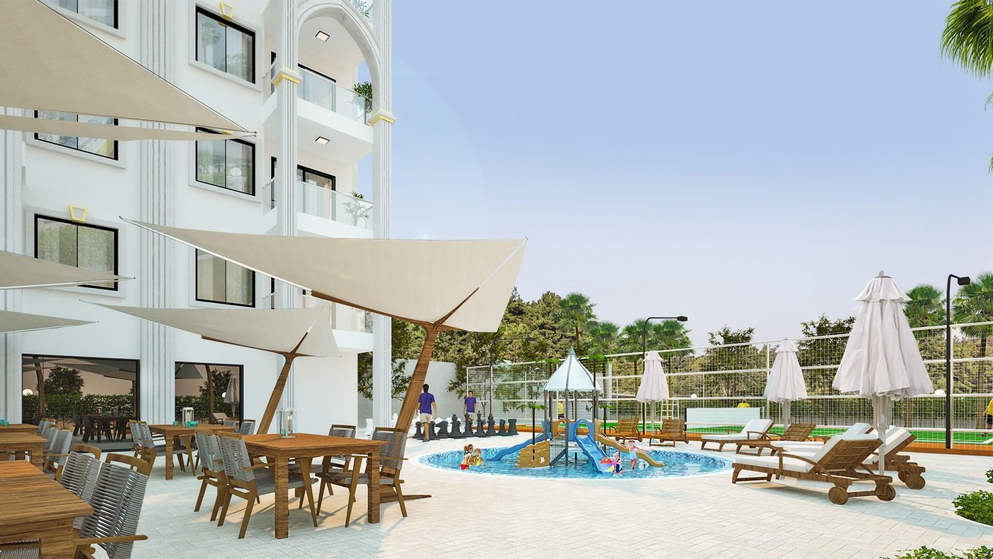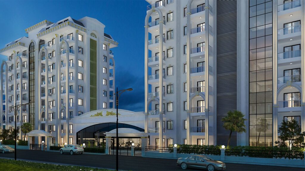 Ce complexe de luxe se compose de deux bâtiments de 9 étages avec 1 et 2 chambres, un total de 180 appartements.