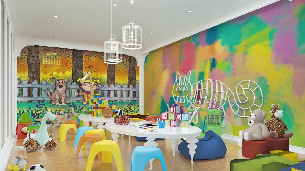 – aire de jeux, salle de jeux,