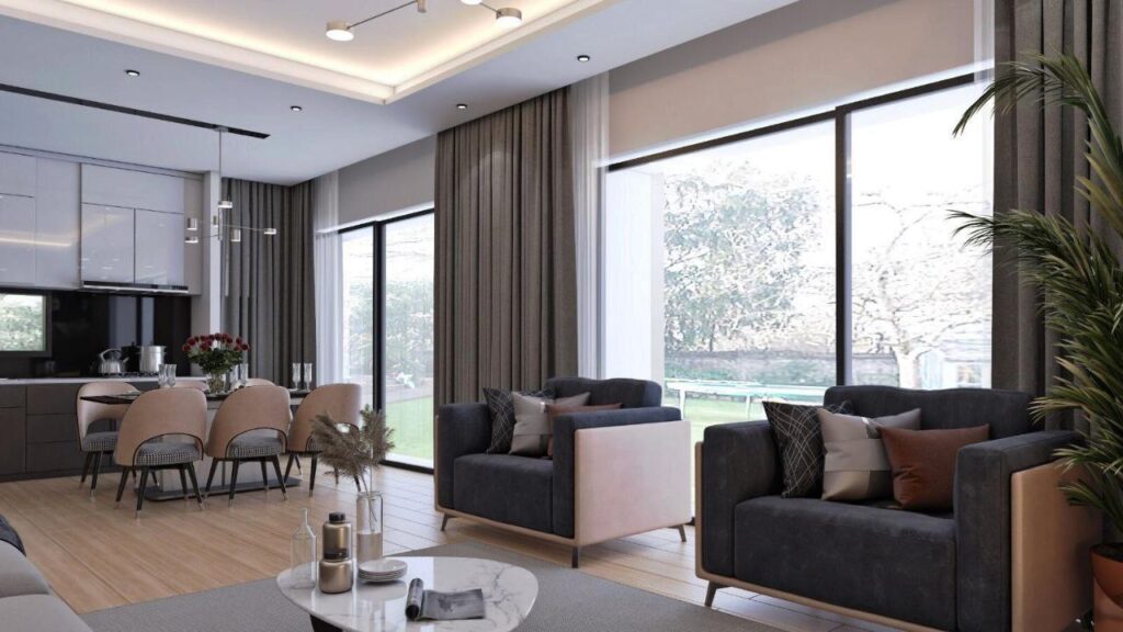 Le complexe Kagan Villas est en cours de construction sur un terrain de 6000 m2. Chaque villa a une superficie brute de 300 m2 et une superficie nette de 215 m2. Il y a aussi deux piscines olympiques. Il y a 10 villas individuelles au total et l’ensemble du projet est déjà terminé et prêt à emménager.