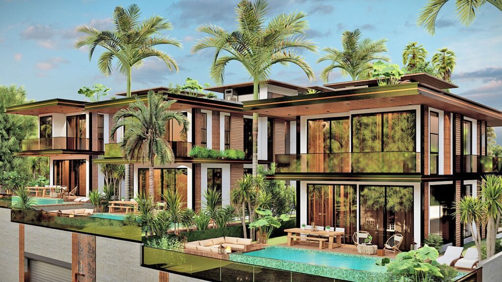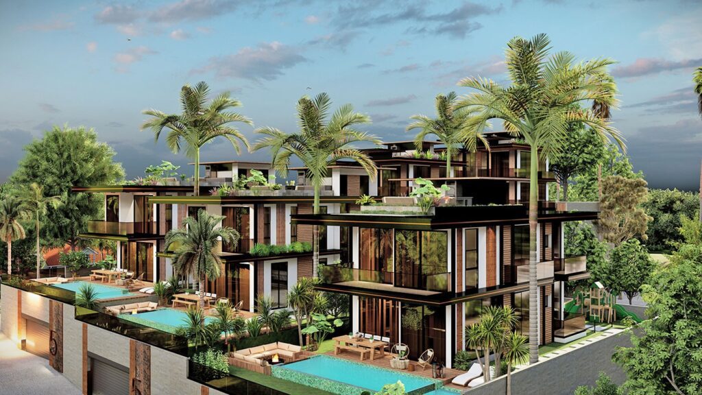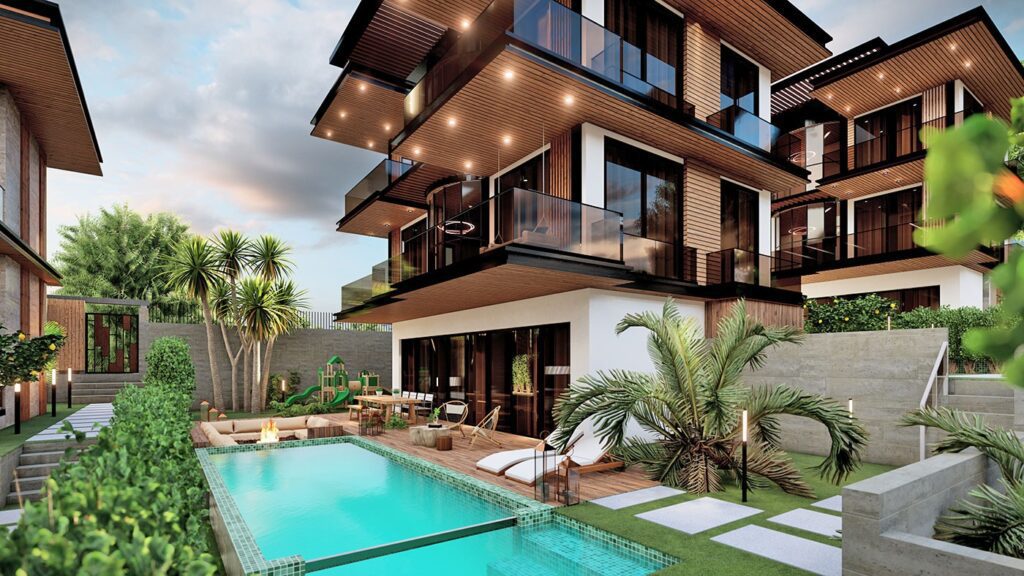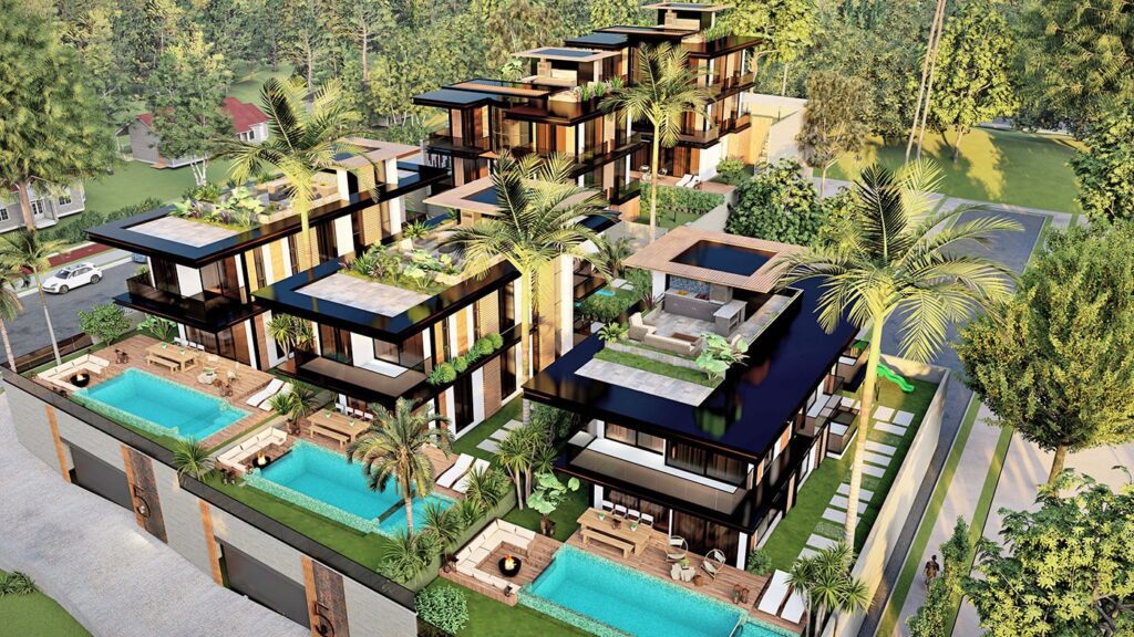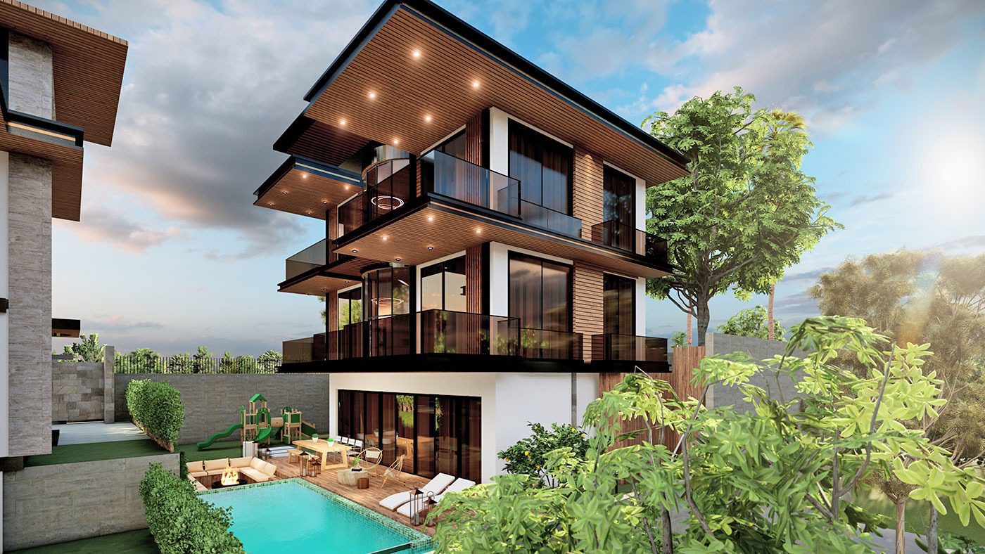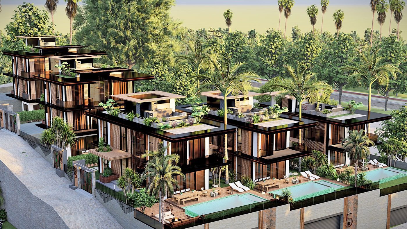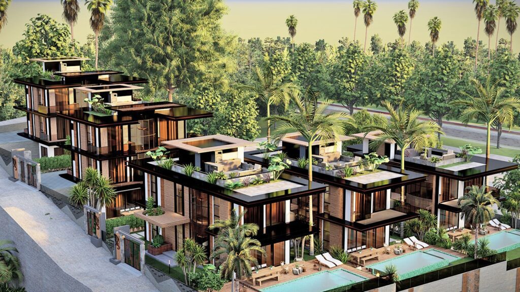 Le complexe de villas est construit sur un terrain de 2.034 m2 et se compose de 5 villas privées. Le complexe dispose d’un système de générateur commun, d’un réservoir d’eau et d’un système hydrophore, de panneaux solaires. Les villas exclusives disposent d’infrastructures telles qu’un système de maison intelligente, une piscine à débordement, un sauna, un bain turc, un jacuzzi, un centre de fitness, un ascenseur, un parking couvert, un système de vidéosurveillance 24h/24.