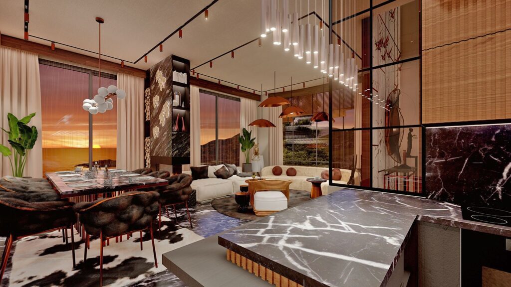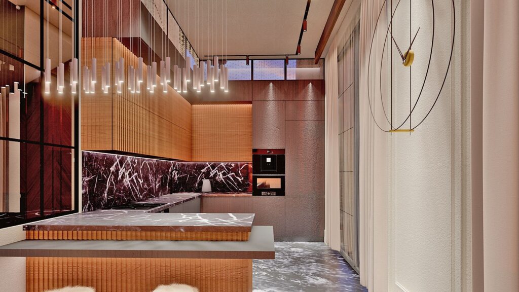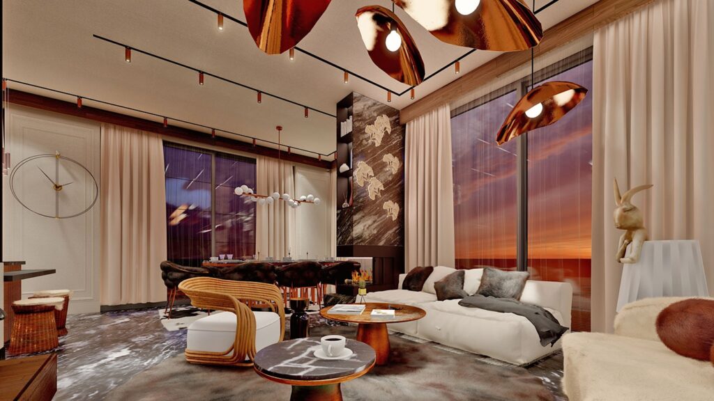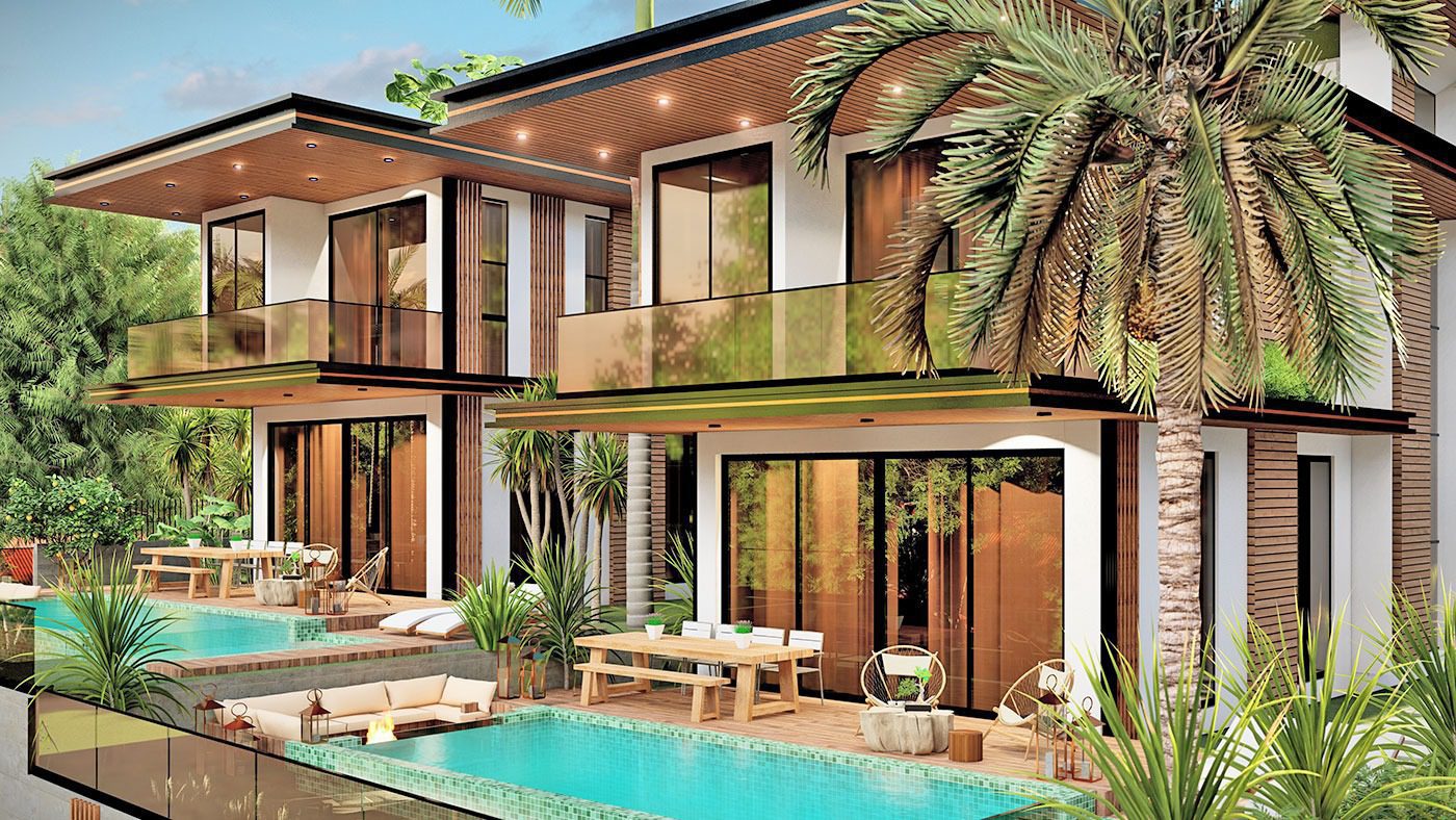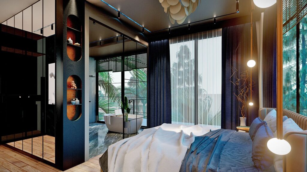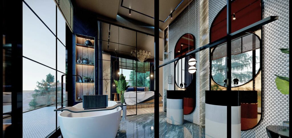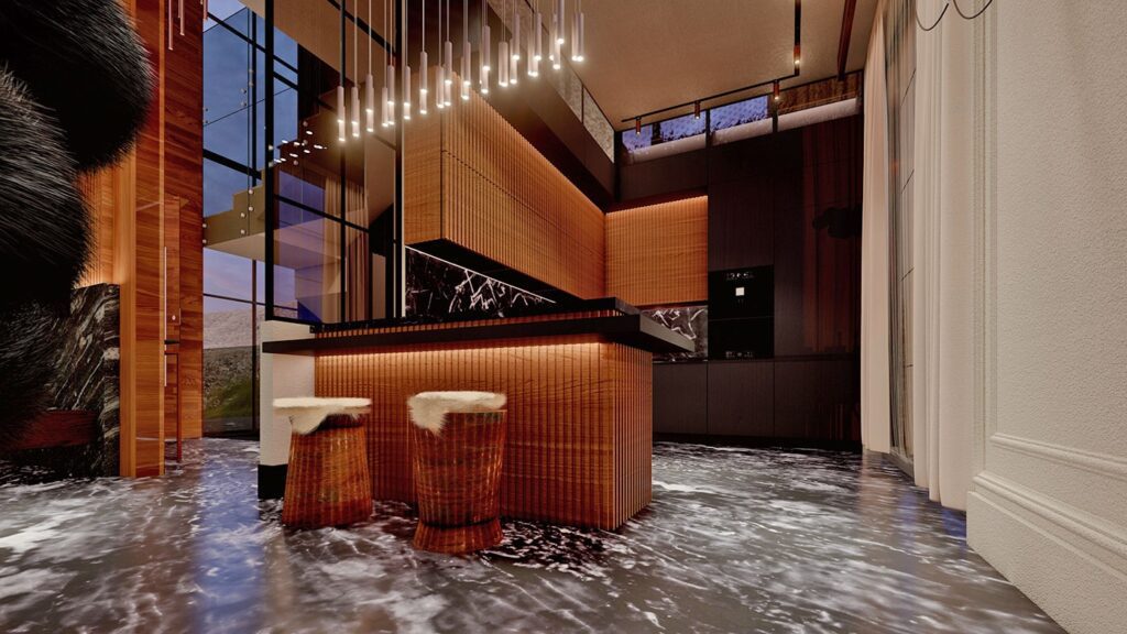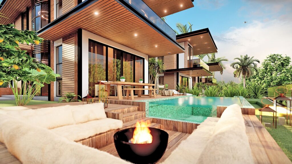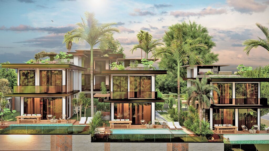 Le complexe de villas est construit sur un terrain de 2.034 m2 et se compose de 5 villas privées. Le complexe dispose d’un système de générateur commun, d’un réservoir d’eau et d’un système hydrophore, de panneaux solaires. Les villas exclusives disposent d’infrastructures telles qu’un système de maison intelligente, une piscine à débordement, un sauna, un bain turc, un jacuzzi, un centre de fitness, un ascenseur, un parking couvert, un système de vidéosurveillance 24h/24.