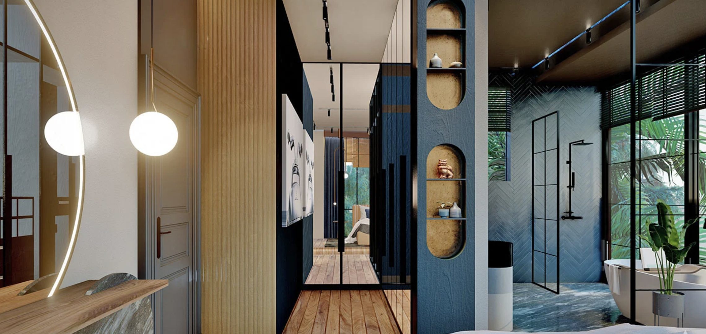 Les villas sont conçues avec des détails tels que des portes en acier, des appareils de cuisine, des appareils électroménagers, une isolation thermique et hydraulique externe, un système de chauffage au sol, une infrastructure de climatisation, un système VRV central, un système d’aspiration central (système de nettoyage), un sous-sol. et entrepôt, buanderie, dressing, terrasse barbecue et jardin sur le toit. Les villas disposent également d’un espace supplémentaire pouvant être utilisé comme salle de loisirs (cinéma, etc.)