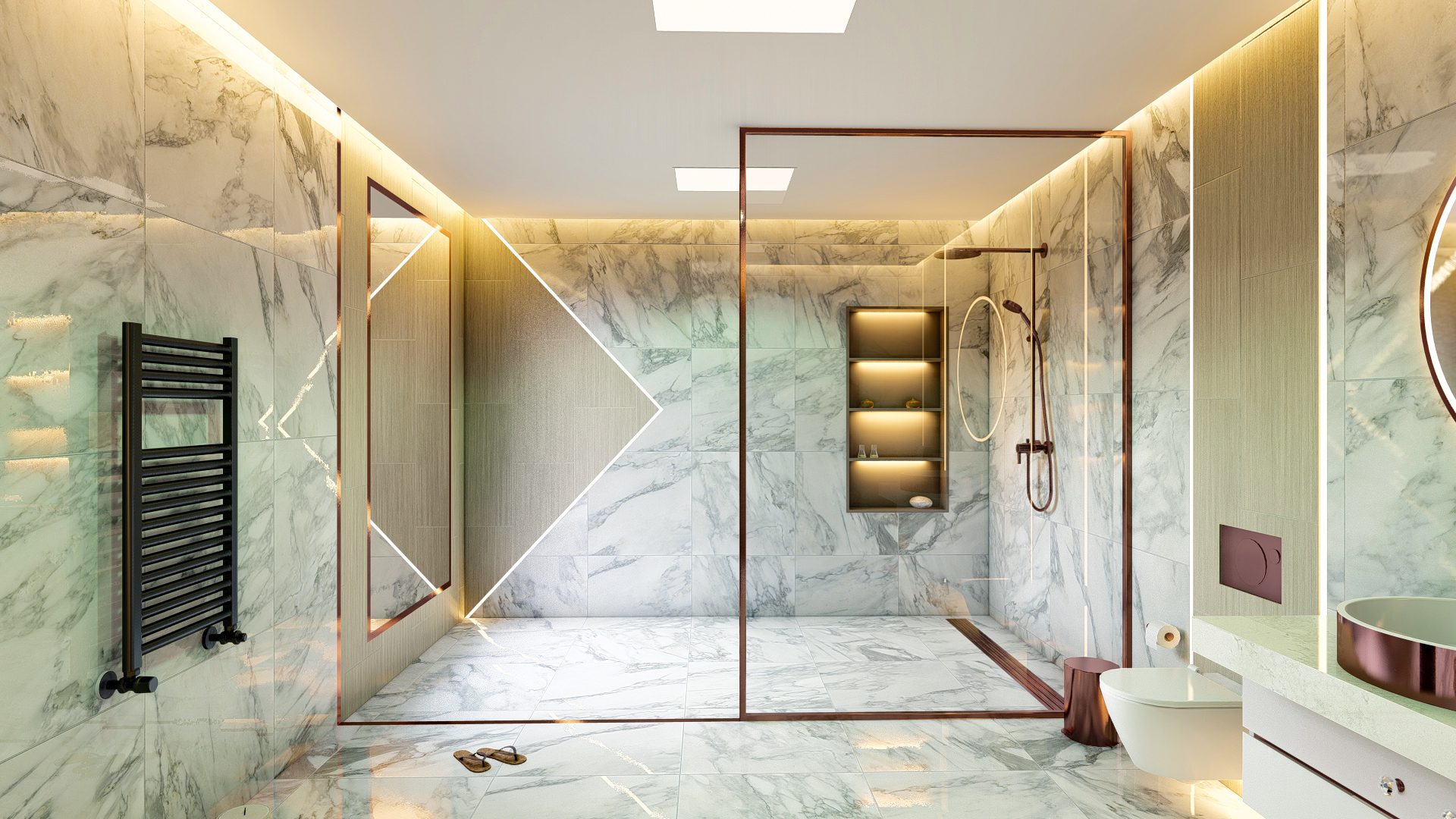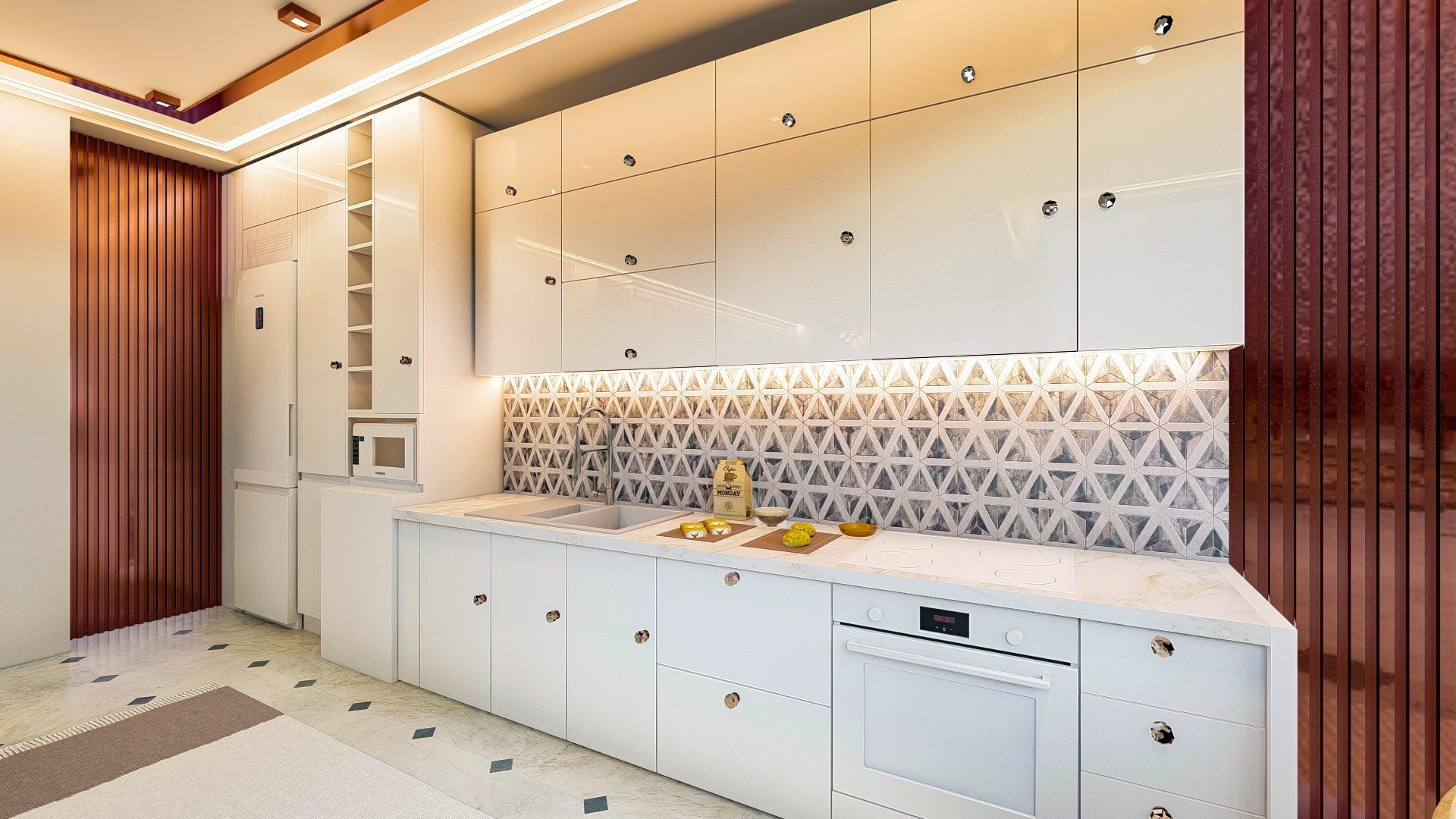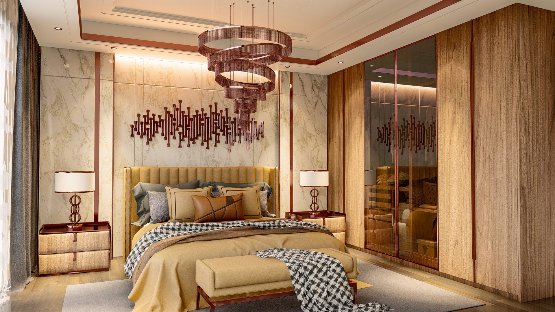 Апартаменты имеют роскошный дизайн и оснащены высококачественными материалами, такими как керамическая плитка на полу, окна с двойным остеклением, рольставни на всех окнах, раздвижные двери на балконы, встроенные точечные светильники, оборудованные кухни. с гранитными столешницами, полностью отделанные плиткой ванные комнаты с мебелью и душевыми кабинами, стальные входные двери и многое другое