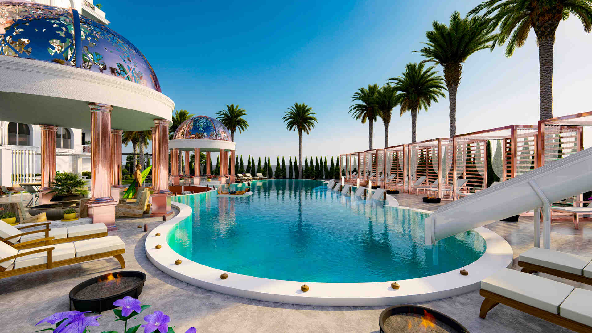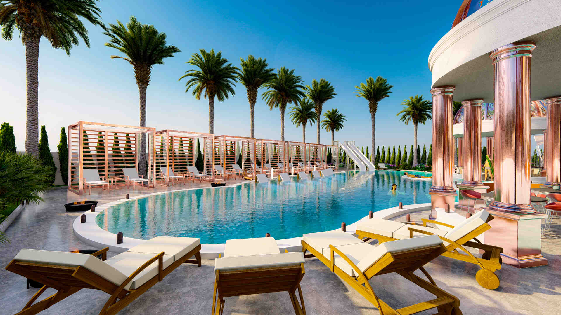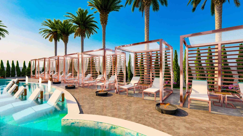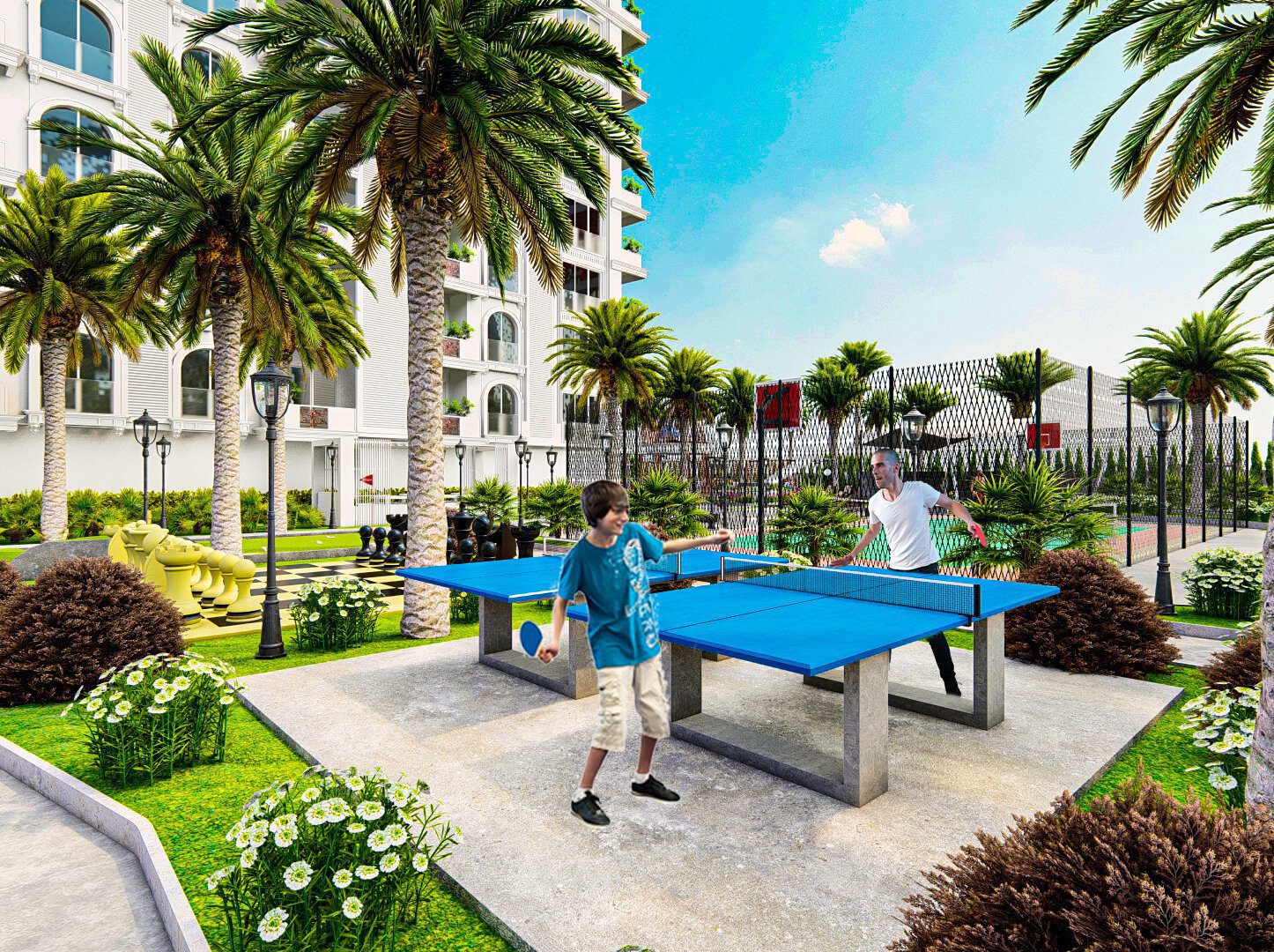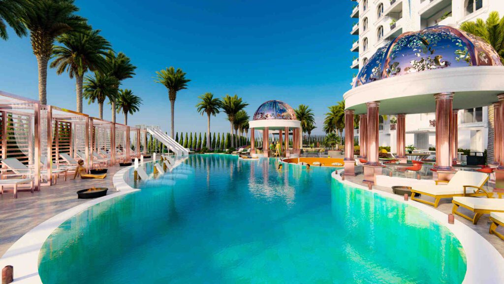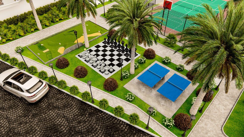 бассейн, турецкую и финскую бани, джакузи, сауну, паровую баню, спа-центр, массажный кабинет, комнату отдыха, фитнес-центр, открытый тренажерный зал, мульти -корт, детская площадка, мини-гольф, шахматная площадка, амфитеатр, игровая комната, киносалон, конференц-зал, крытая площадка для сквоша, симулятор гольфа, пешеходные дорожки, беседки, автостоянка, лифты , круглосуточная охрана, услуги консьержа, трансфер до пляжа, видеонаблюдение, центральные спутниковые антенны, электрогенераторы и многое другое.