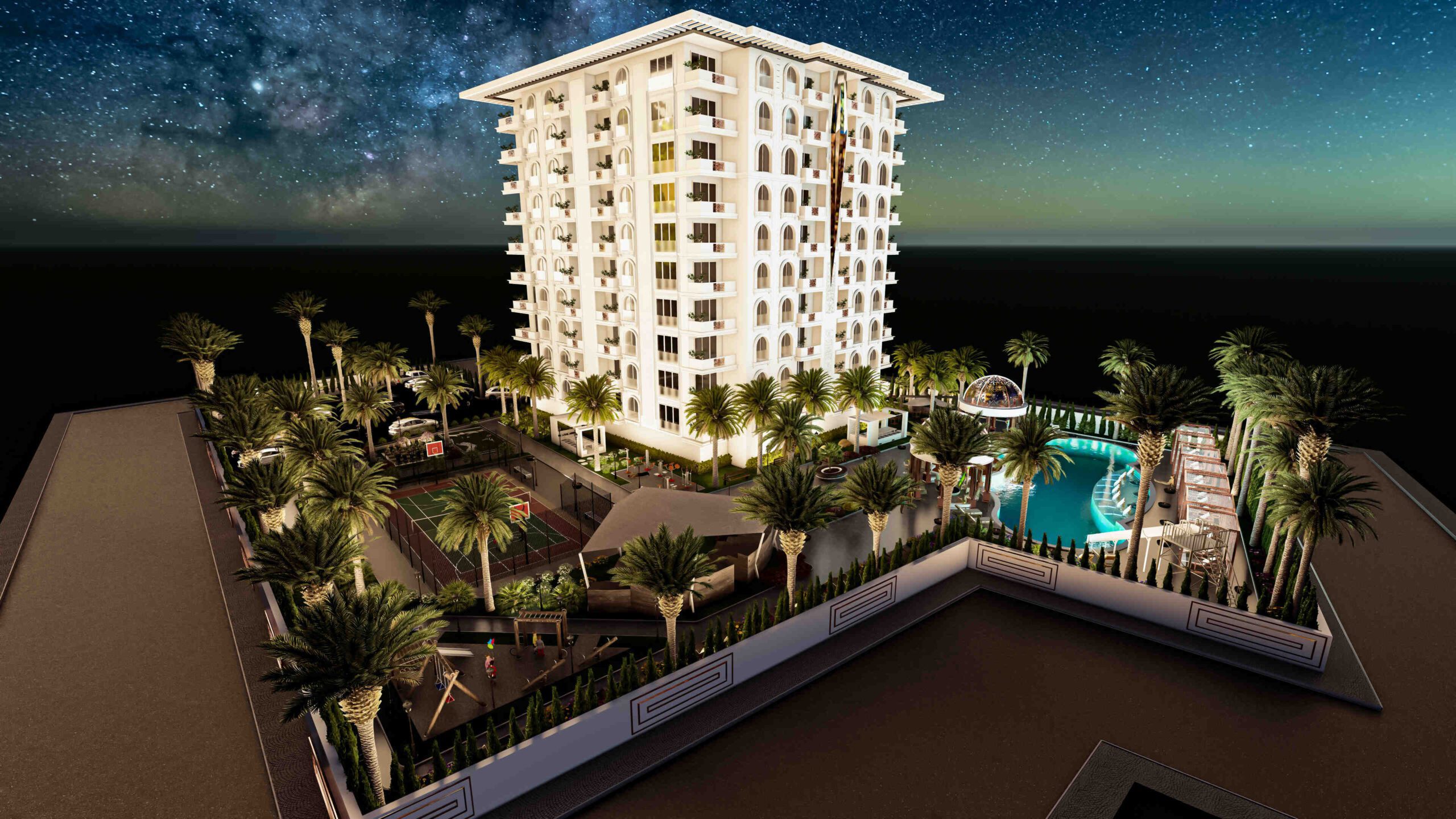 Жилой комплекс построен на земельном участке площадью 4217 м2 и состоит из 64 квартир. Этот комплекс предлагает различные социальные удобства и роскошные функции