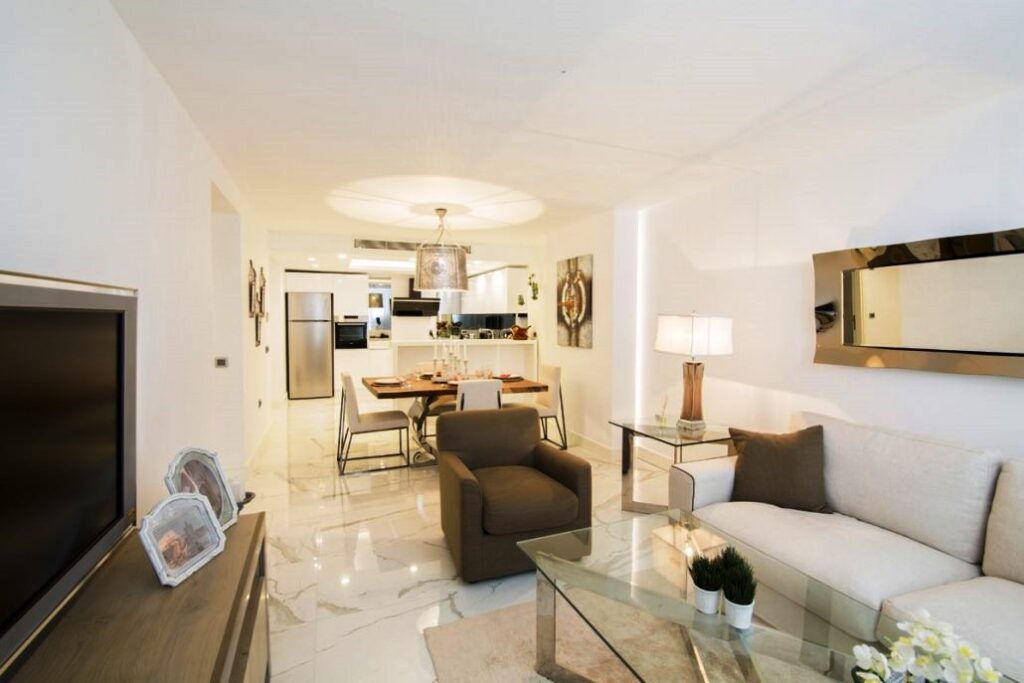 • 1+1, гостиная и 1 спальня, 70/60 м2,  1 ванная комната, полностью меблирована и с террасой