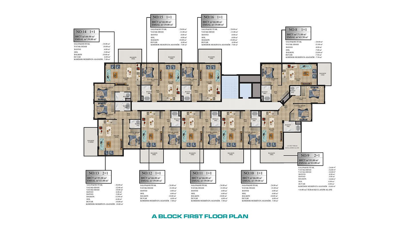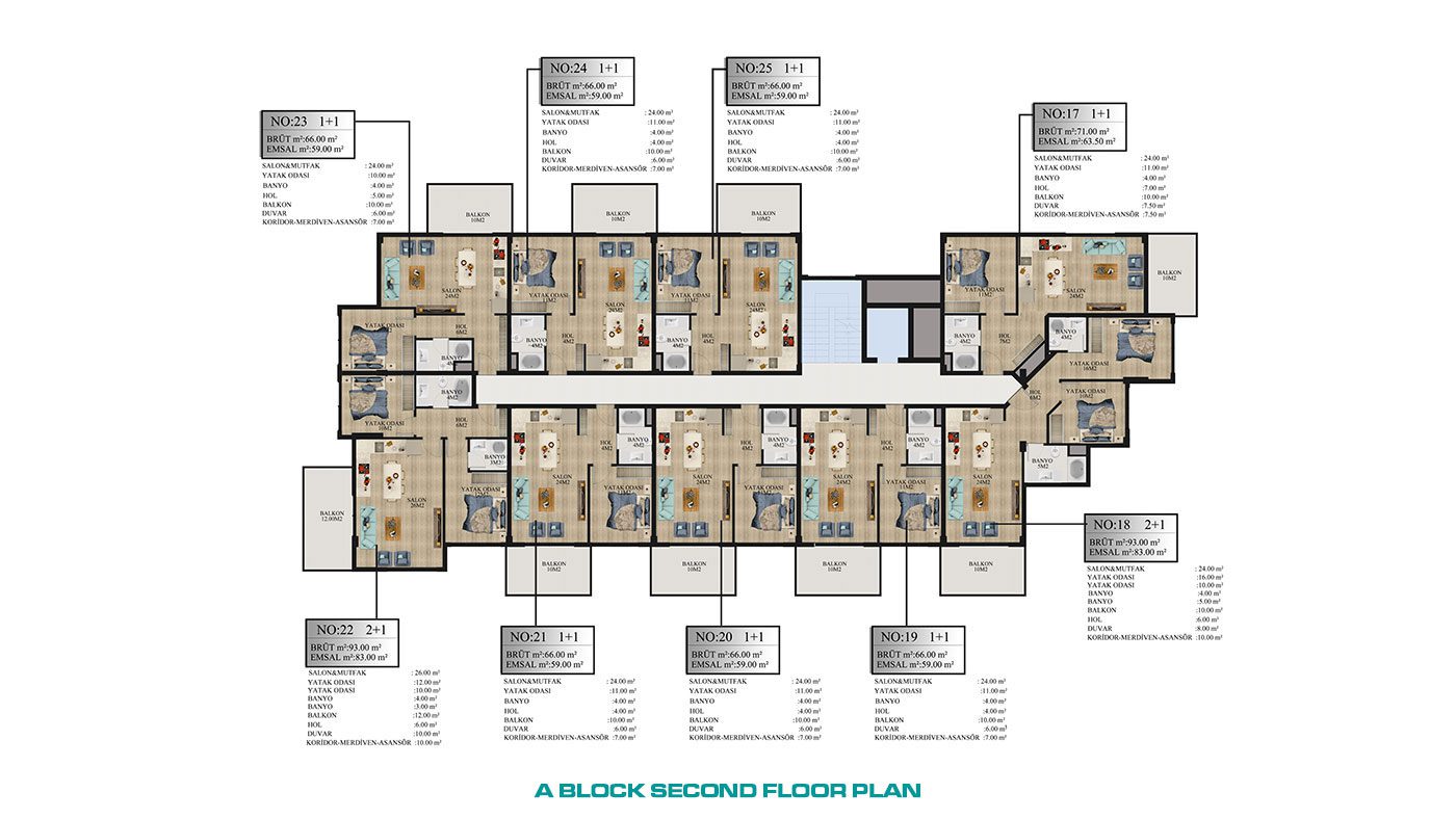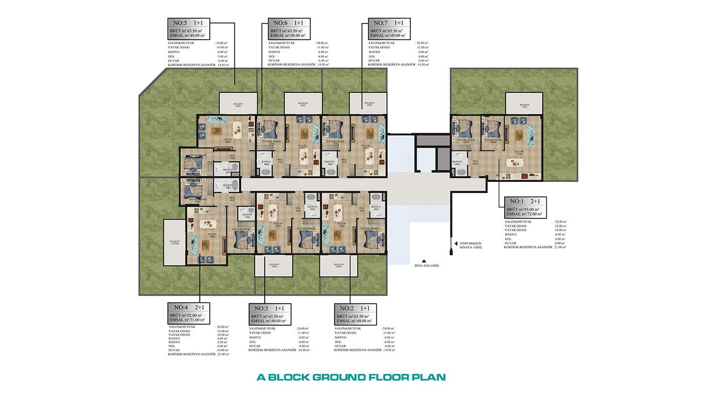 Построенный на земельном участке площадью 8.250 м2, жилой комплекс состоит из 4 блоков по 5 этажей и всего 124 квартир. Здесь Вы можете найти :