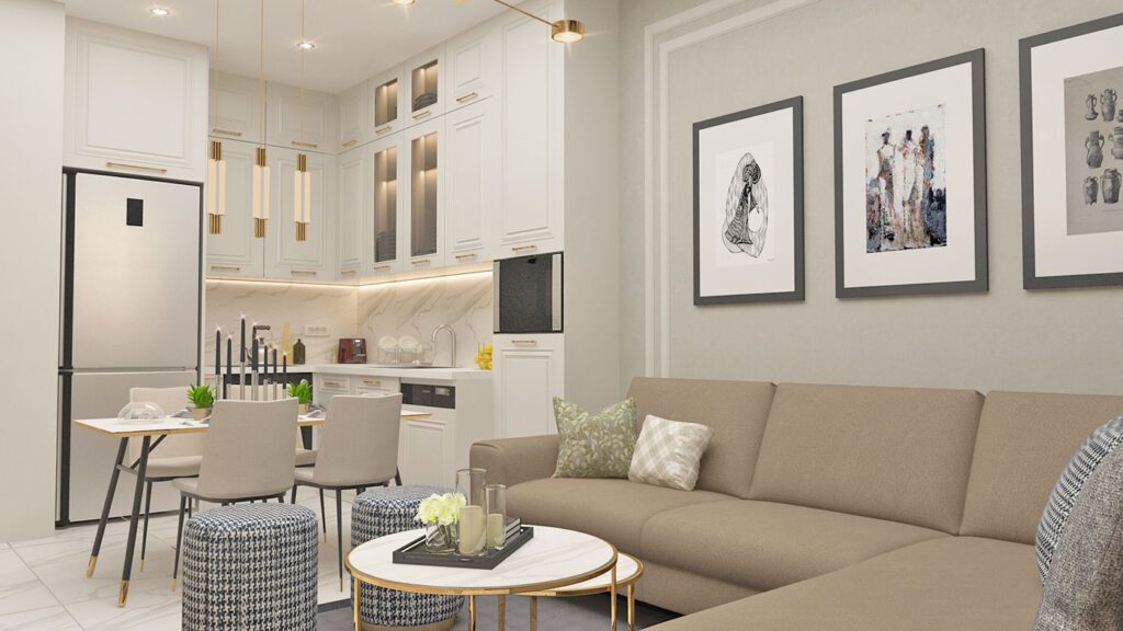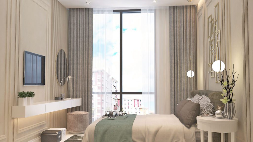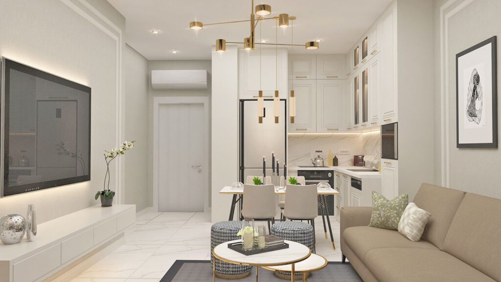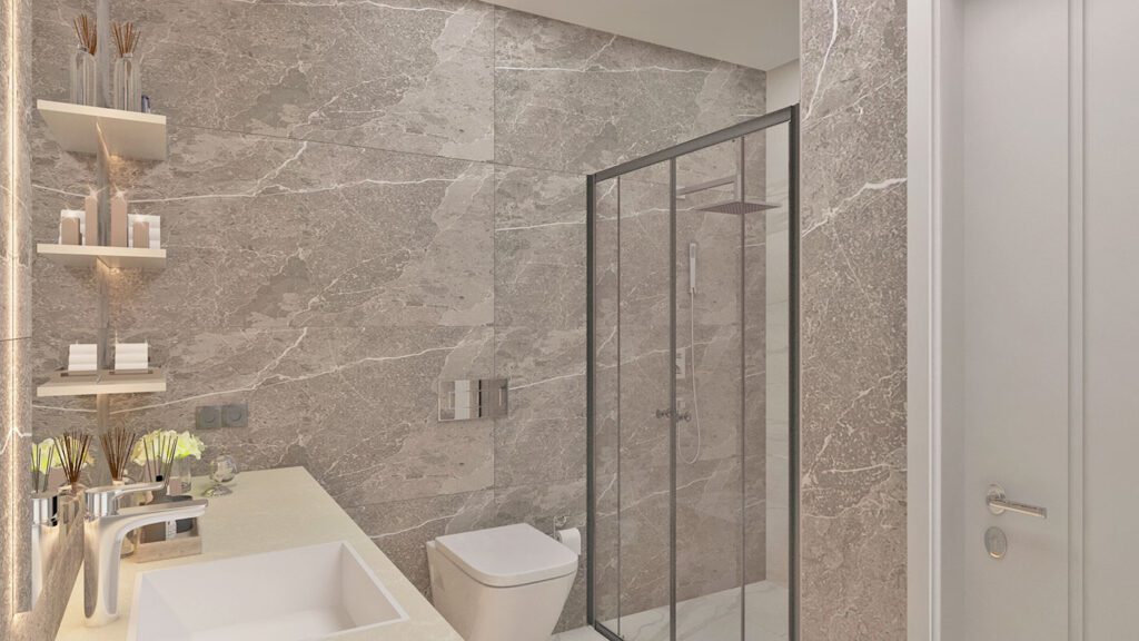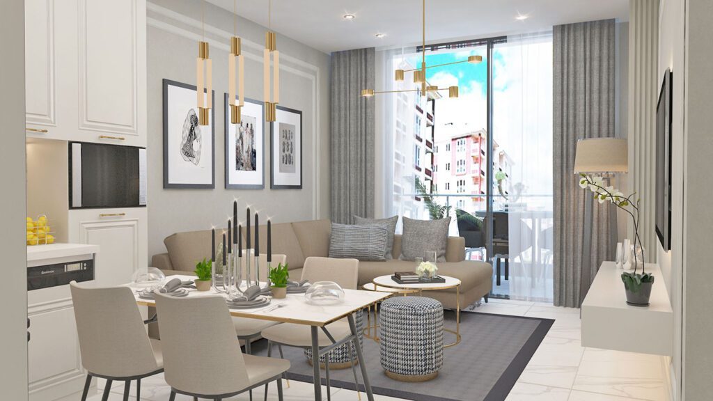 Квартиры имеют современный дизайн и оснащены материалами высшего качества, такими как: стальная бронированная дверь, окна ПВХ с двойным остеклением, полностью оборудованная и облицованная плиткой ванная комната, встроенная кухня и многое другое.