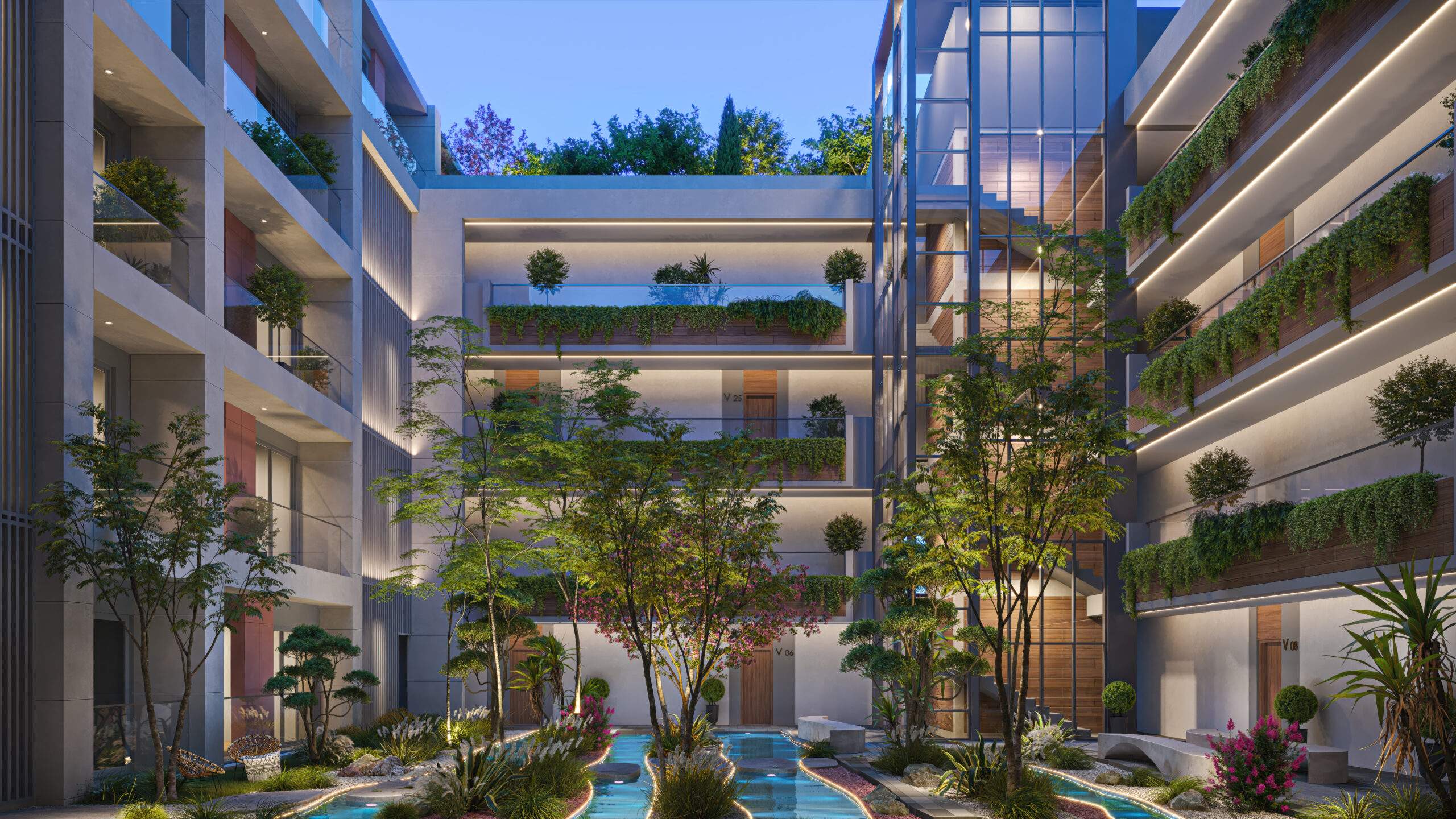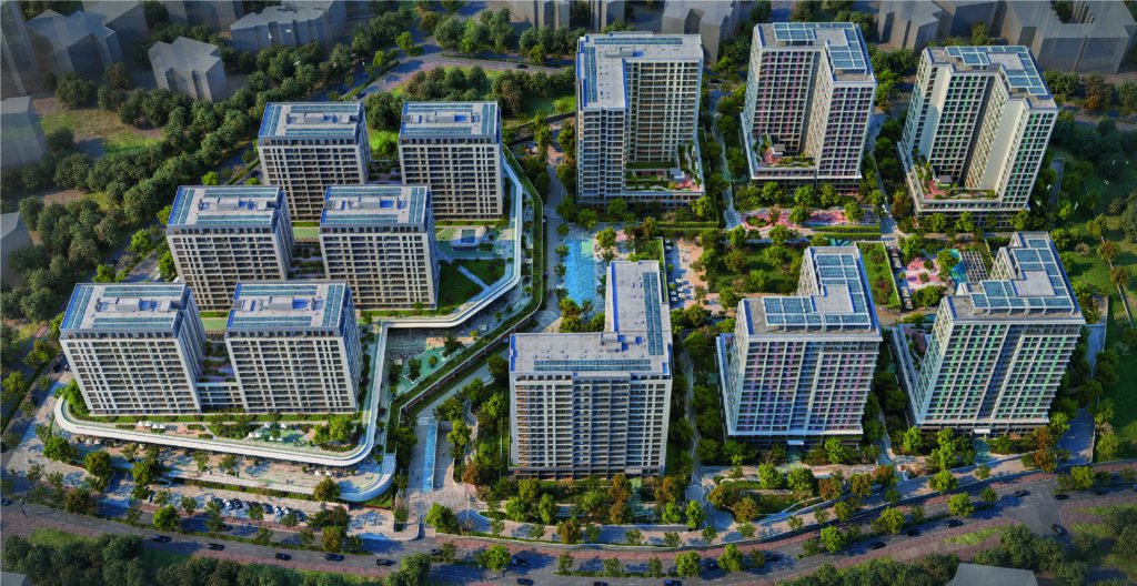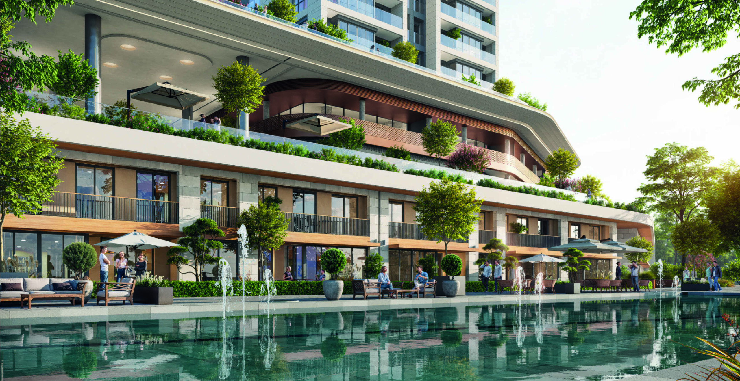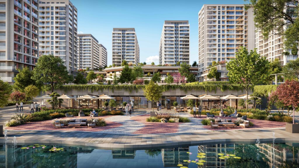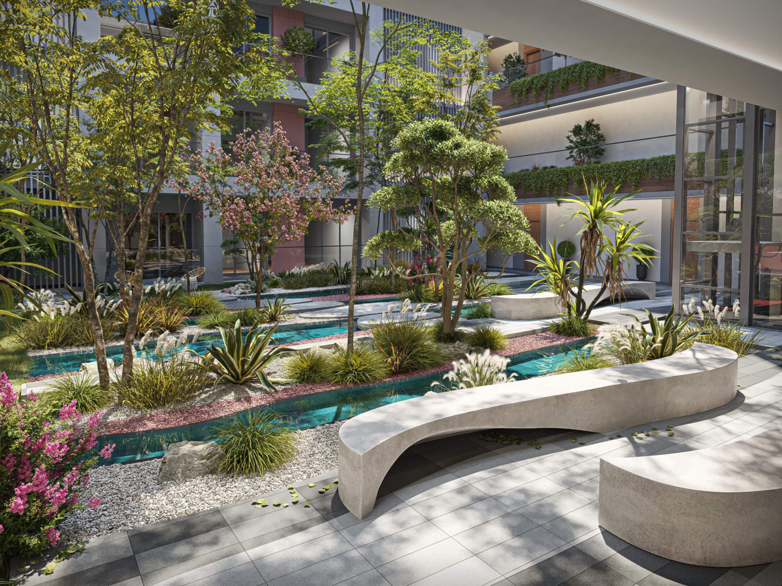 - Зеленая зона площадью 45 000 м2 с ландшафтными бассейнами