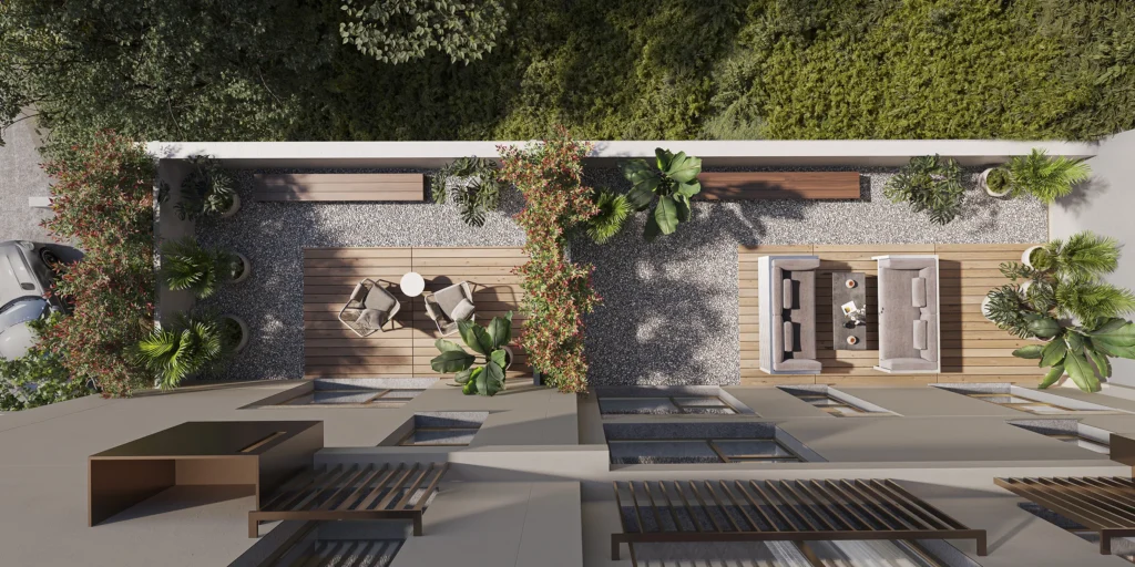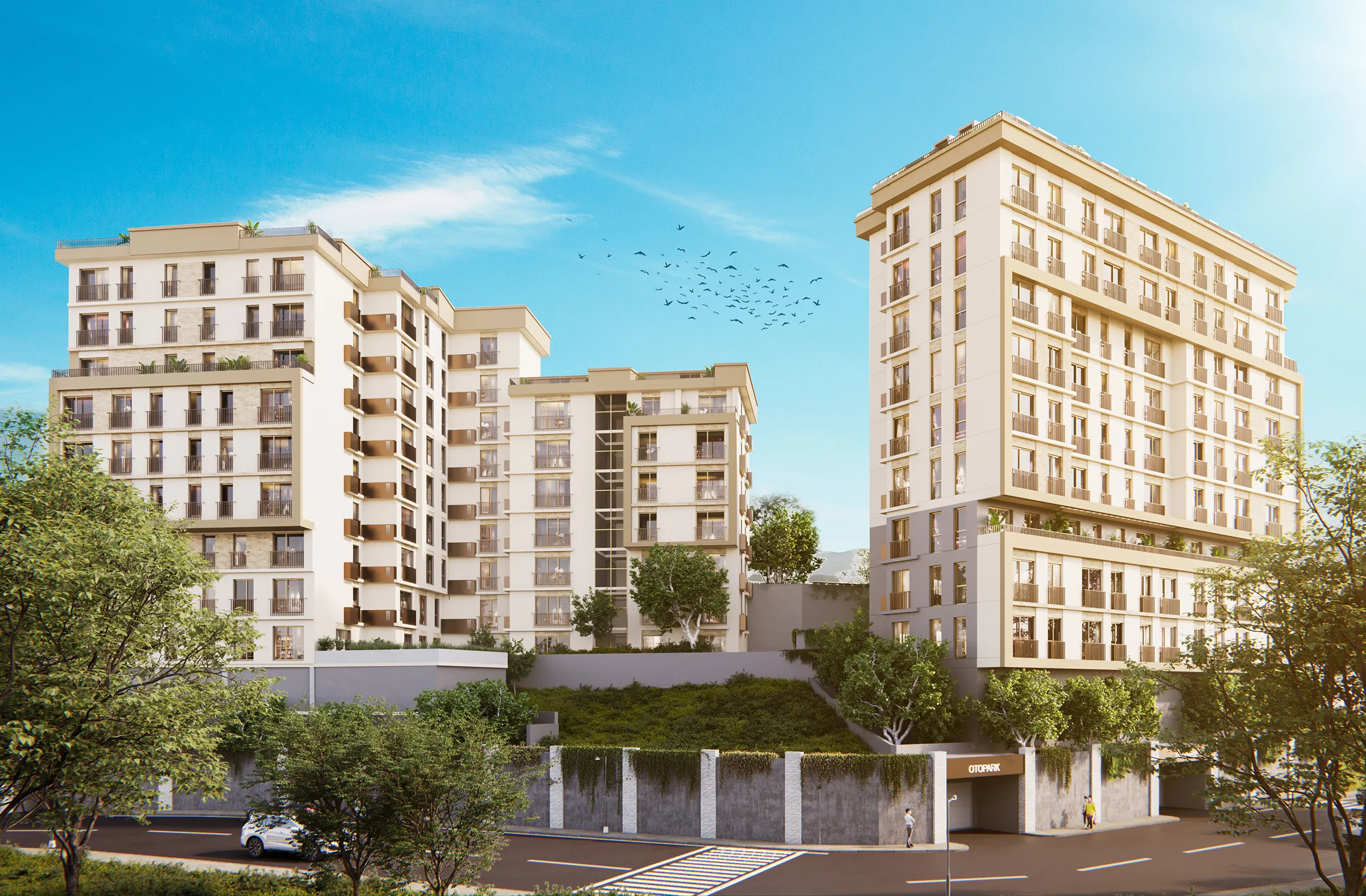 Типы квартир варьируются от 1 + 1 до 3 + 1, включая дуплексы с садом и апартаменты в мансарде с большими террасами, в то время как площадь квартир варьируются от 55 до 225 кв.м.
