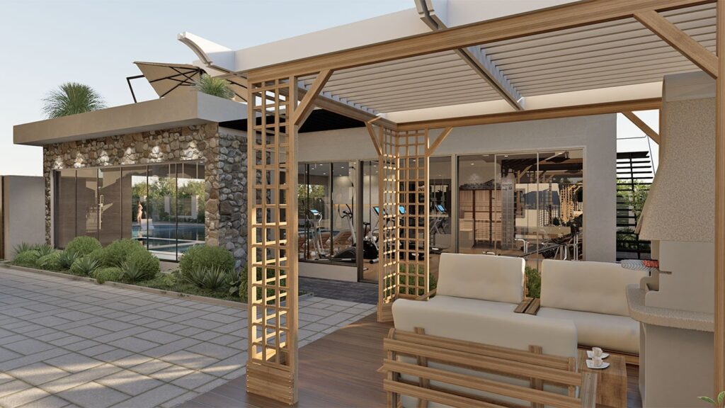 Апартаменты имеют современный дизайн и оснащены качественными материалами, такими как: стальная бронированная дверь, окна из ПВХ с двойным остеклением, видеодомофон, ванная комната, отделанная плиткой, оборудованная кухня со шкафами и гранитной столешницей, кафельный пол, проводка для кондиционера, спутниковое телевидение и многое другое.