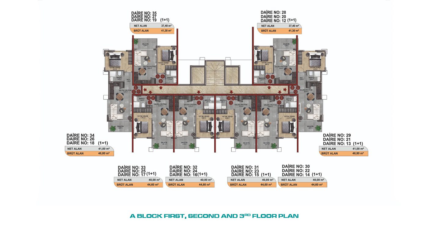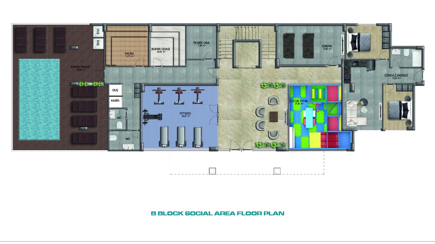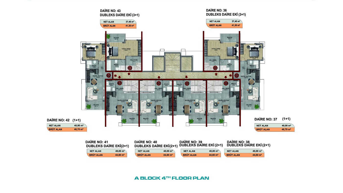 Площадь 2.800 м2 ,2 блока, 63 квартиры