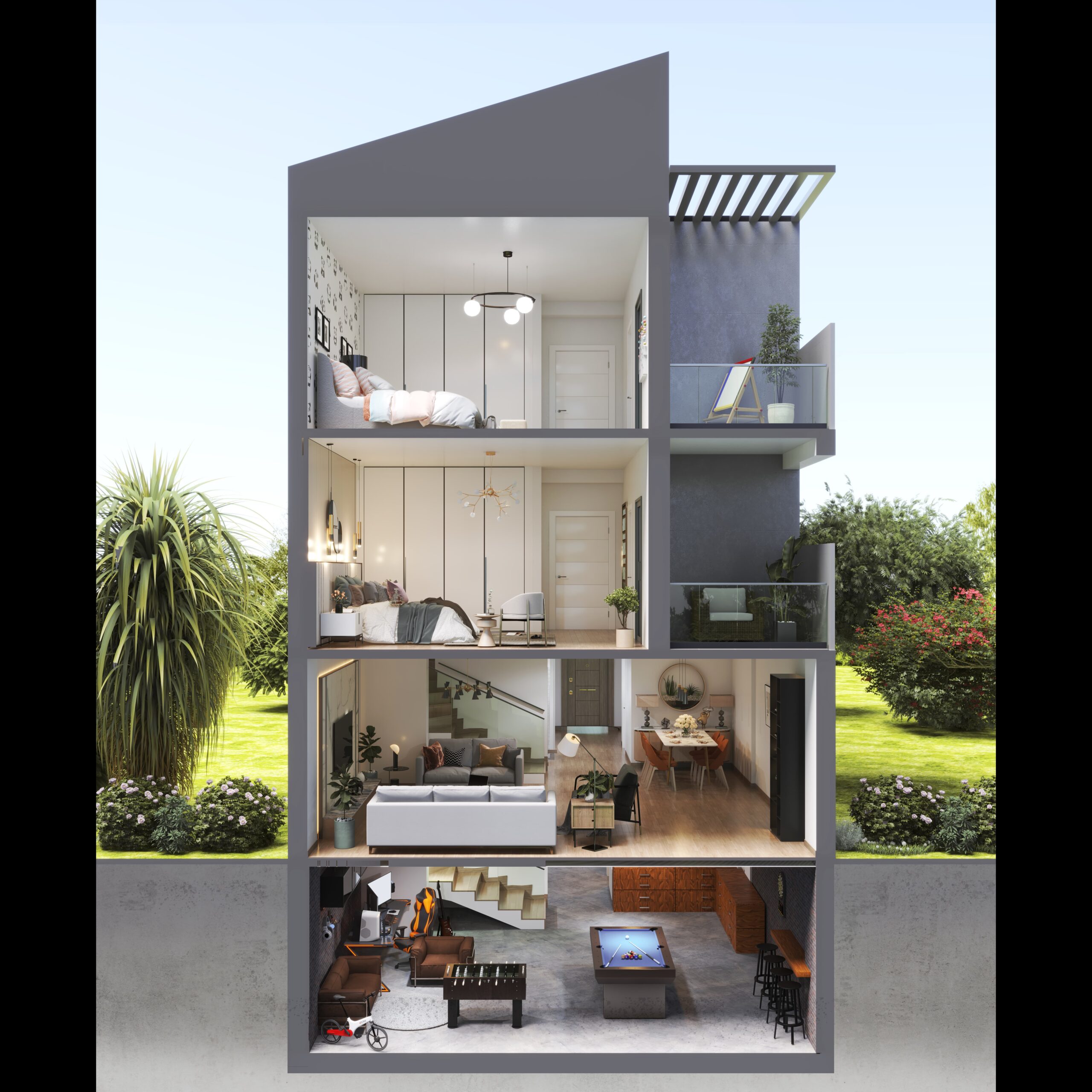 - Все спальни имеют отдельную ванную комнату и балкон с видом на город и сад